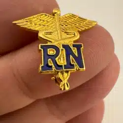 RN Registered Nurse Caduceus Lapel Pin Brooch – 1977 Uniform Accessories
