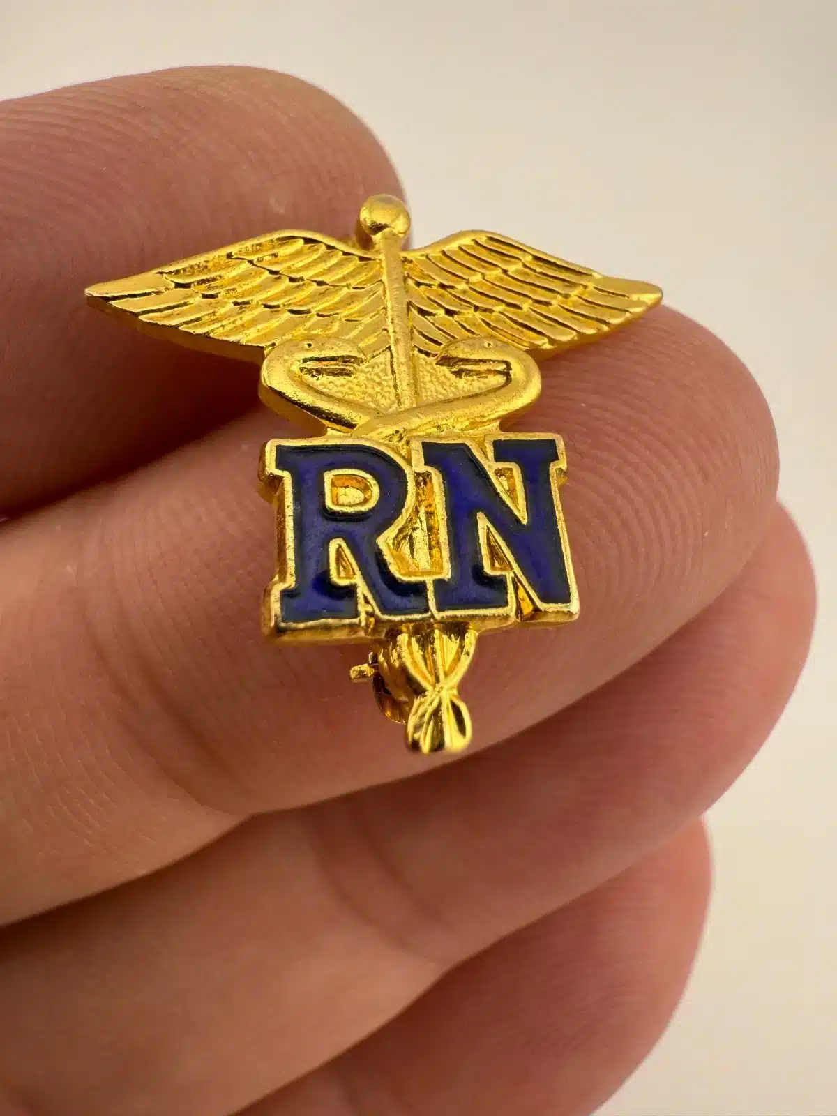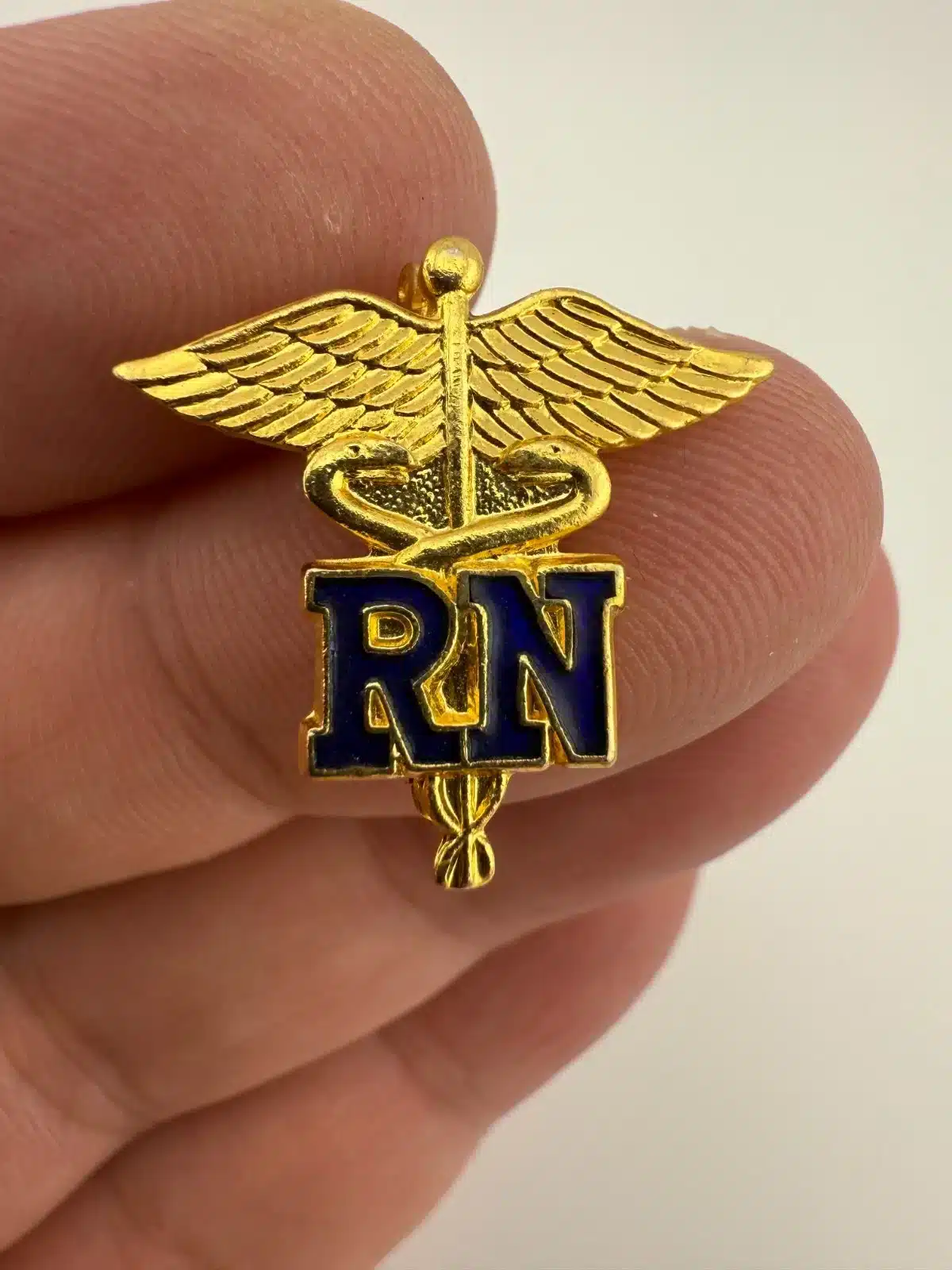 RN Registered Nurse Caduceus Lapel Pin Brooch – 1977 Uniform Accessories