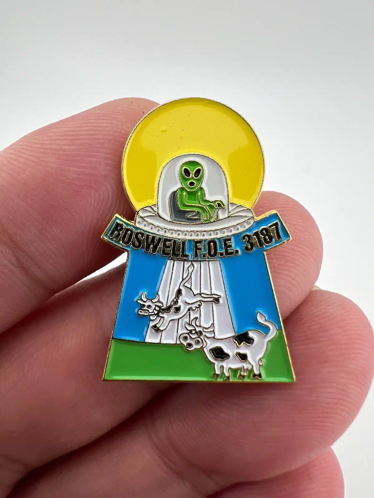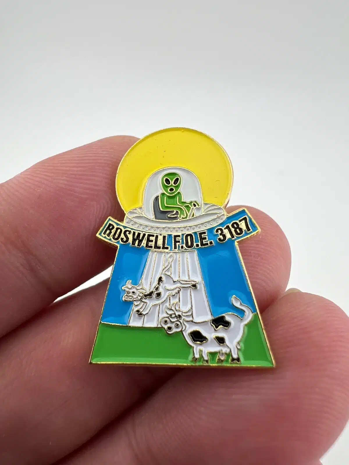 Roswell F.O.E. 3187 Lapel Hat Pin – Eagle Riders Pin – UFO, Alien, Cows