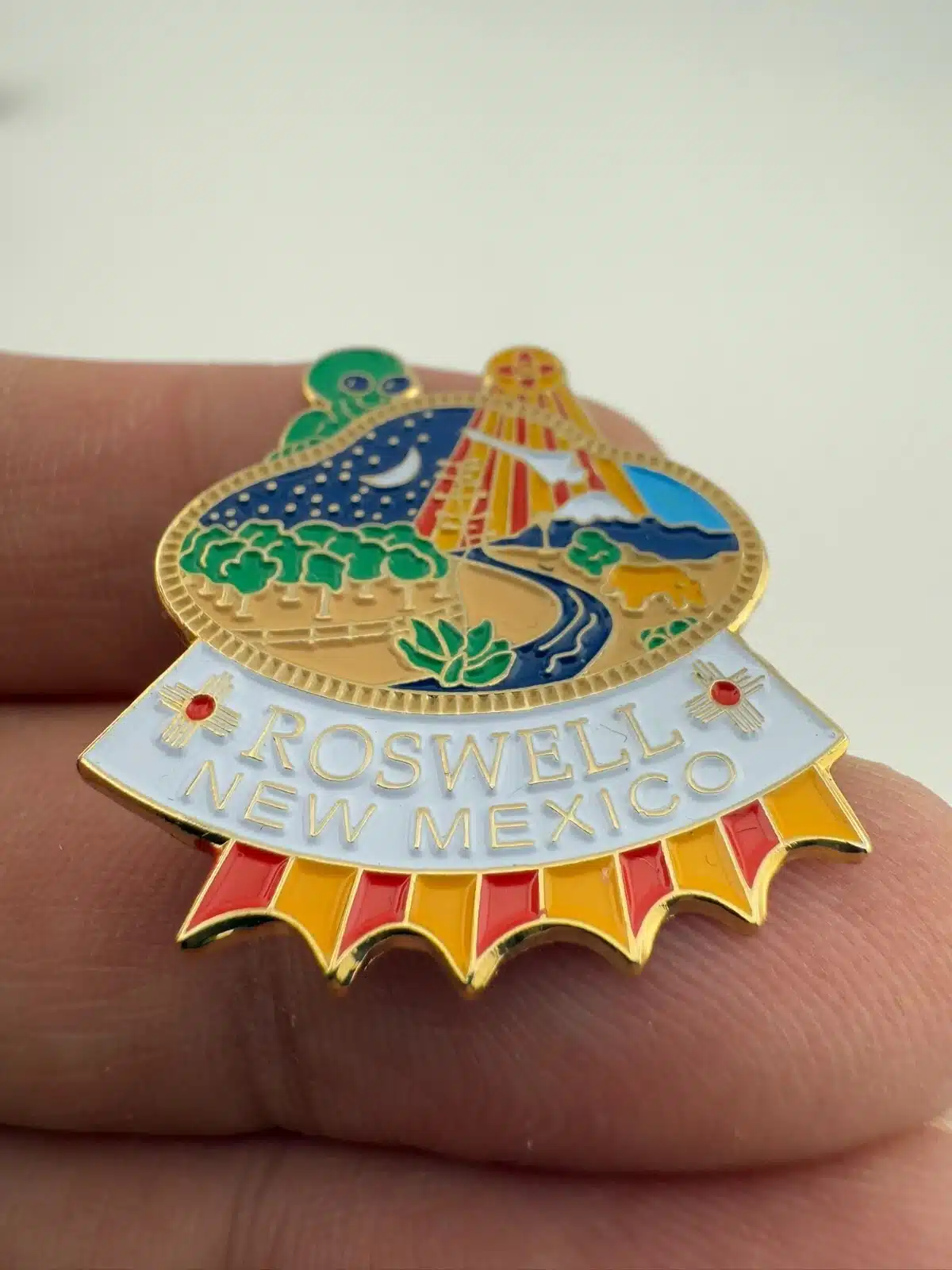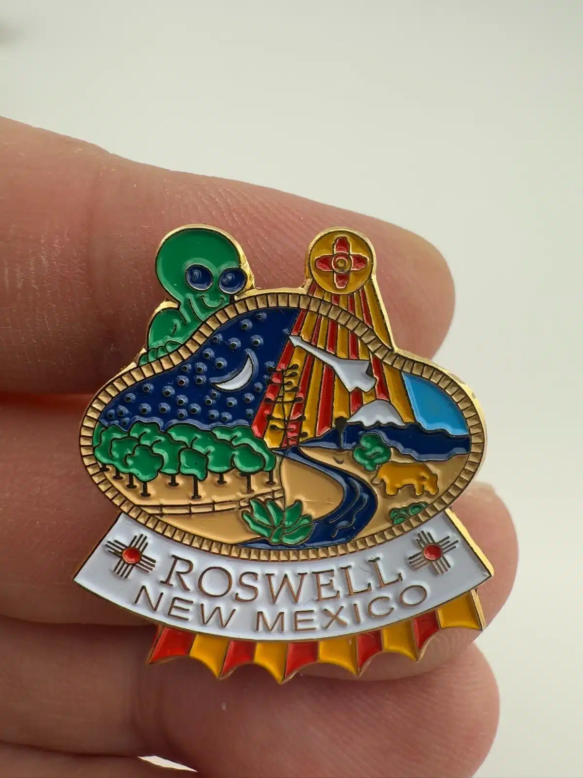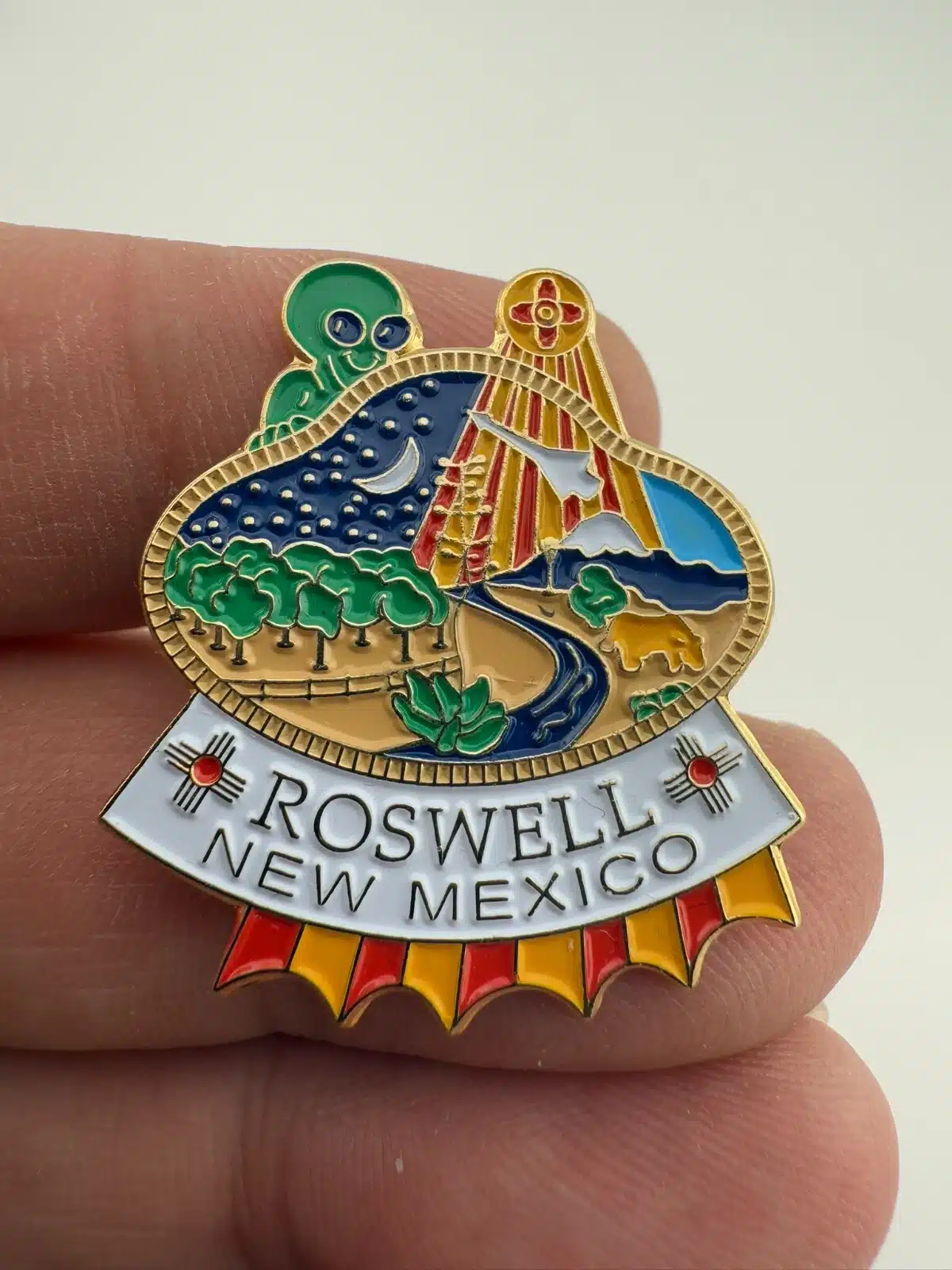Roswell New Mexico Lapel Pin with Green Alien, Spaceship, etc