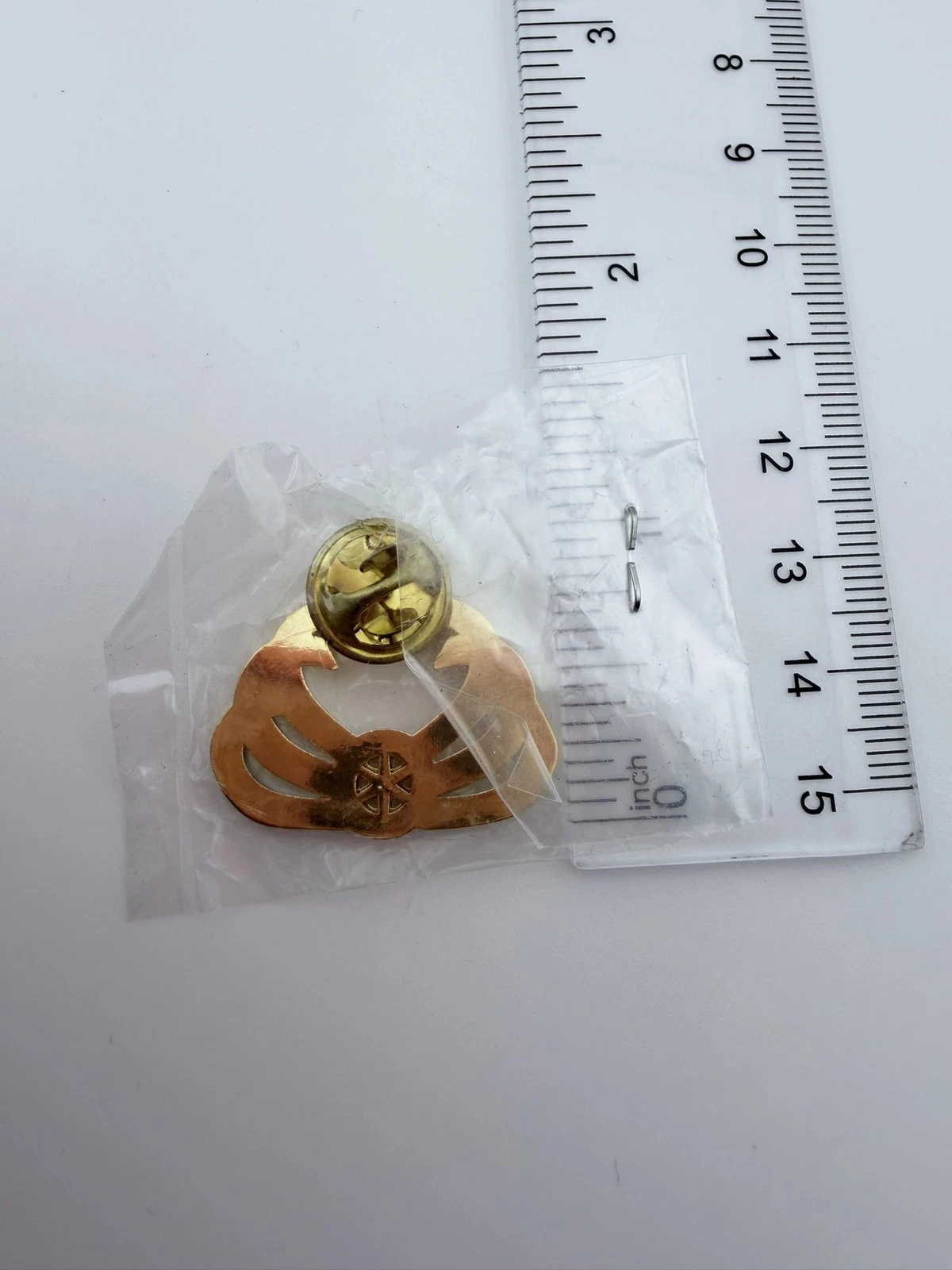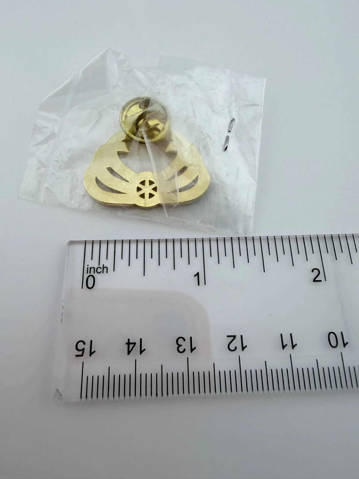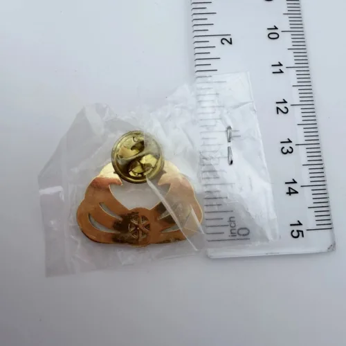 The pin measures just over 1 inch in width by 1 inch in height.