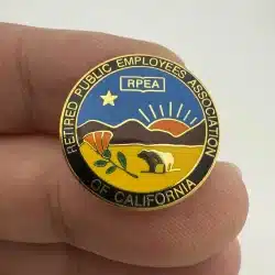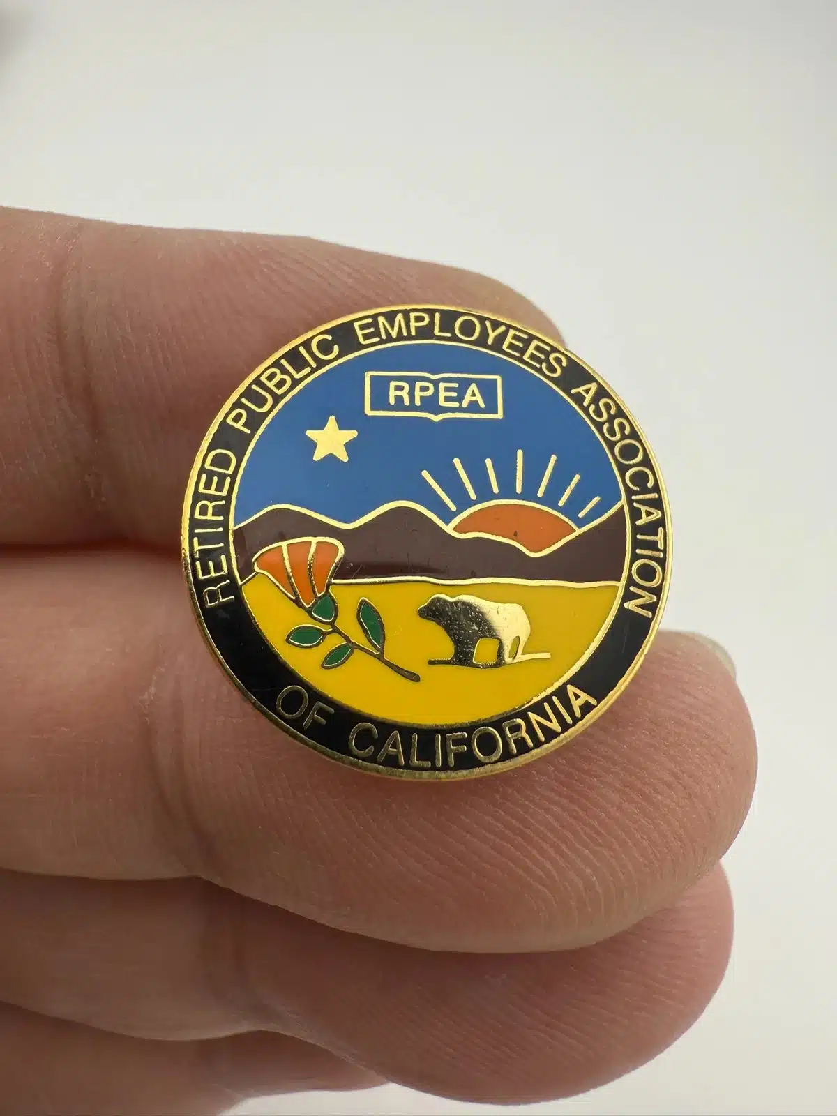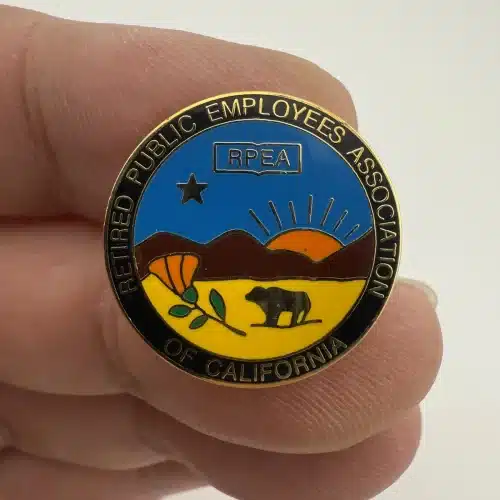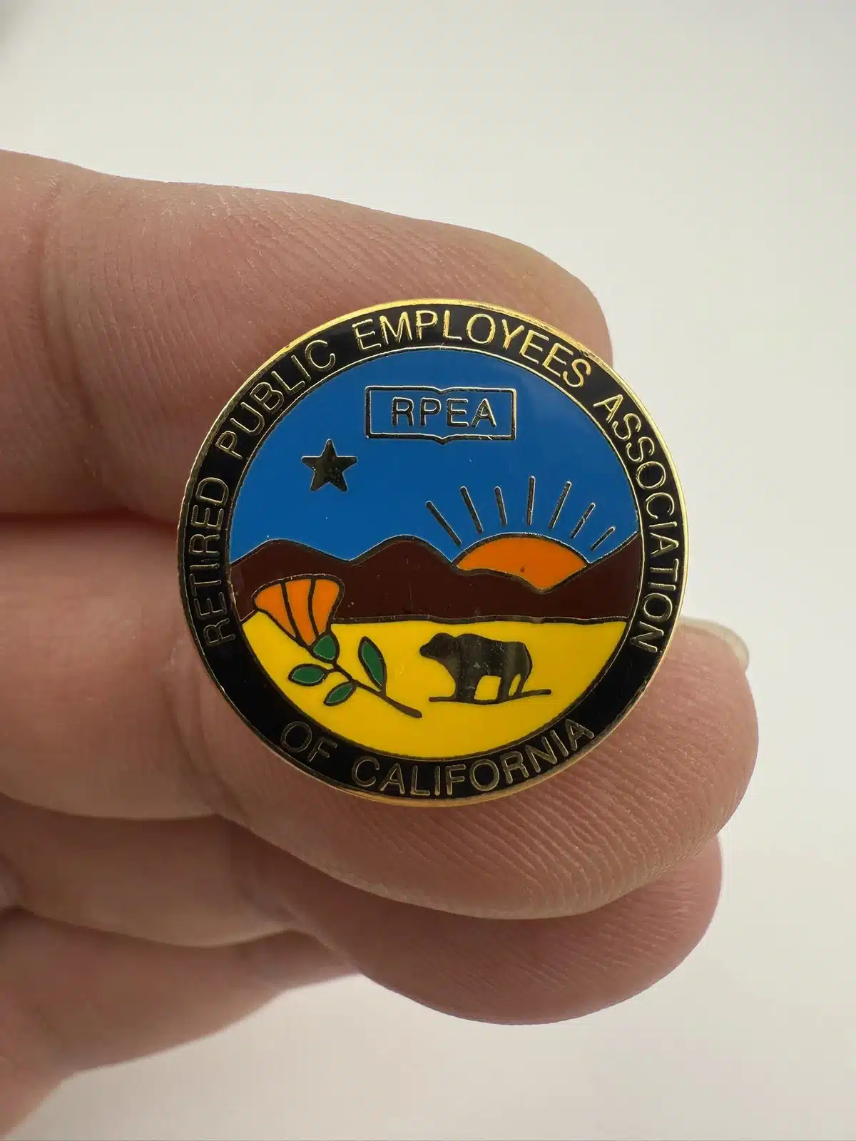 This pin features the emblem of the Retired Public Employees Association of California, showcasing its commitment to advocating for retired public workers. The design reflects the organization’s mission and heritage, symbolizing unity among its members in California. Nicely designed.