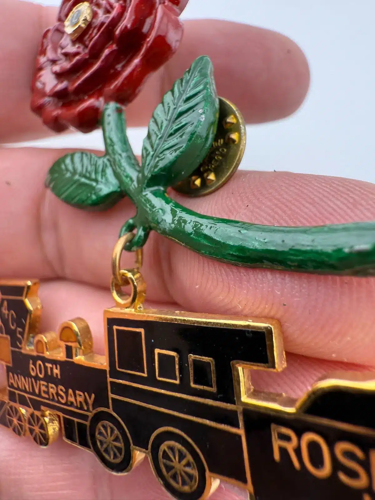 Sacramento Area Lions 4C5 District Rose and Train Pin – 60th anniversary