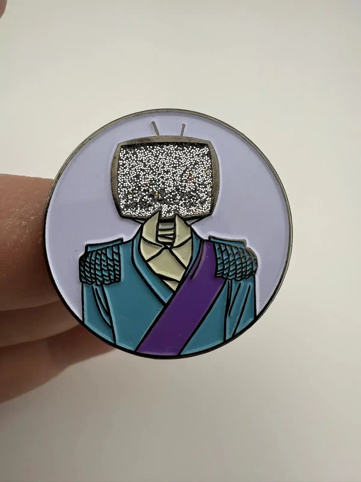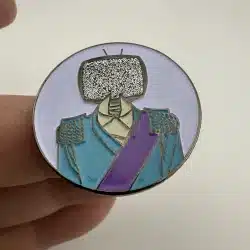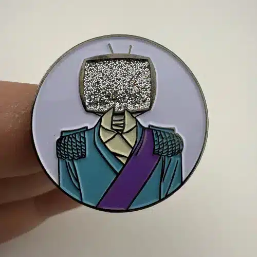 This pin features the iconic Prince Robot IV character from the acclaimed comic series ‘Saga,’ known for its unique blend of science fiction and fantasy elements. Crafted by Yesterdays, the design captures the character’s distinct robotic features and artistic style, making it a standout piece for collectors of comic memorabilia.