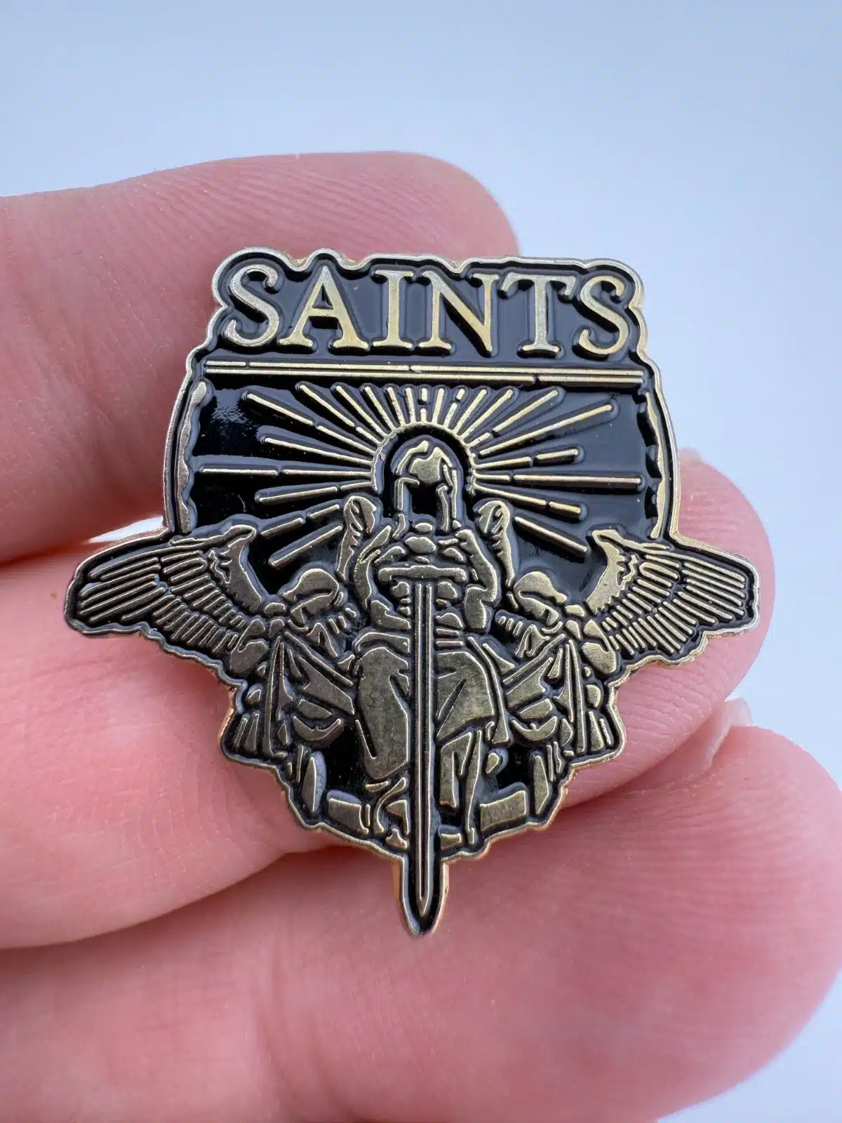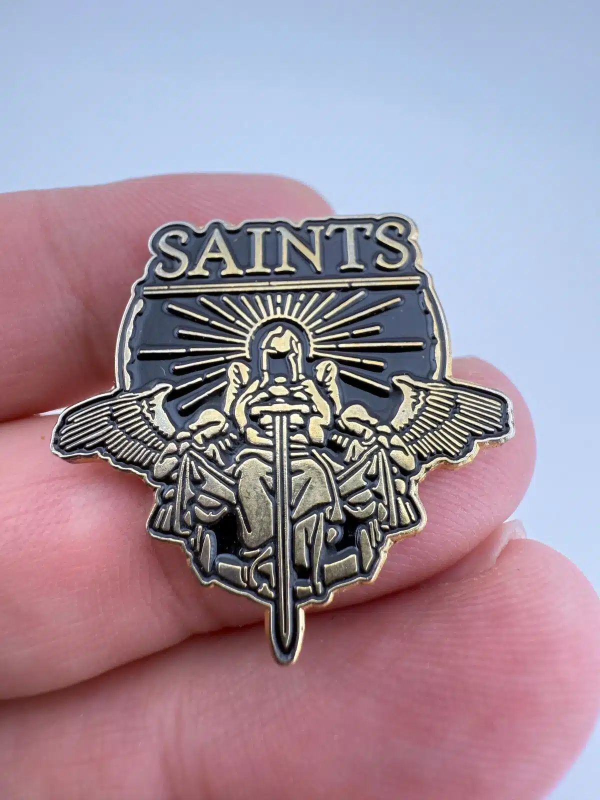 Saints Lapel Hat Pin – Black and Gold Tone