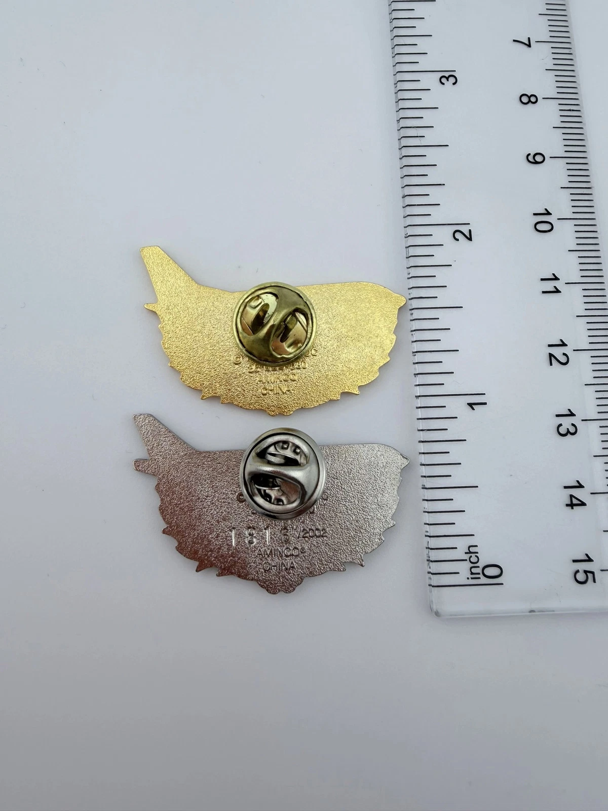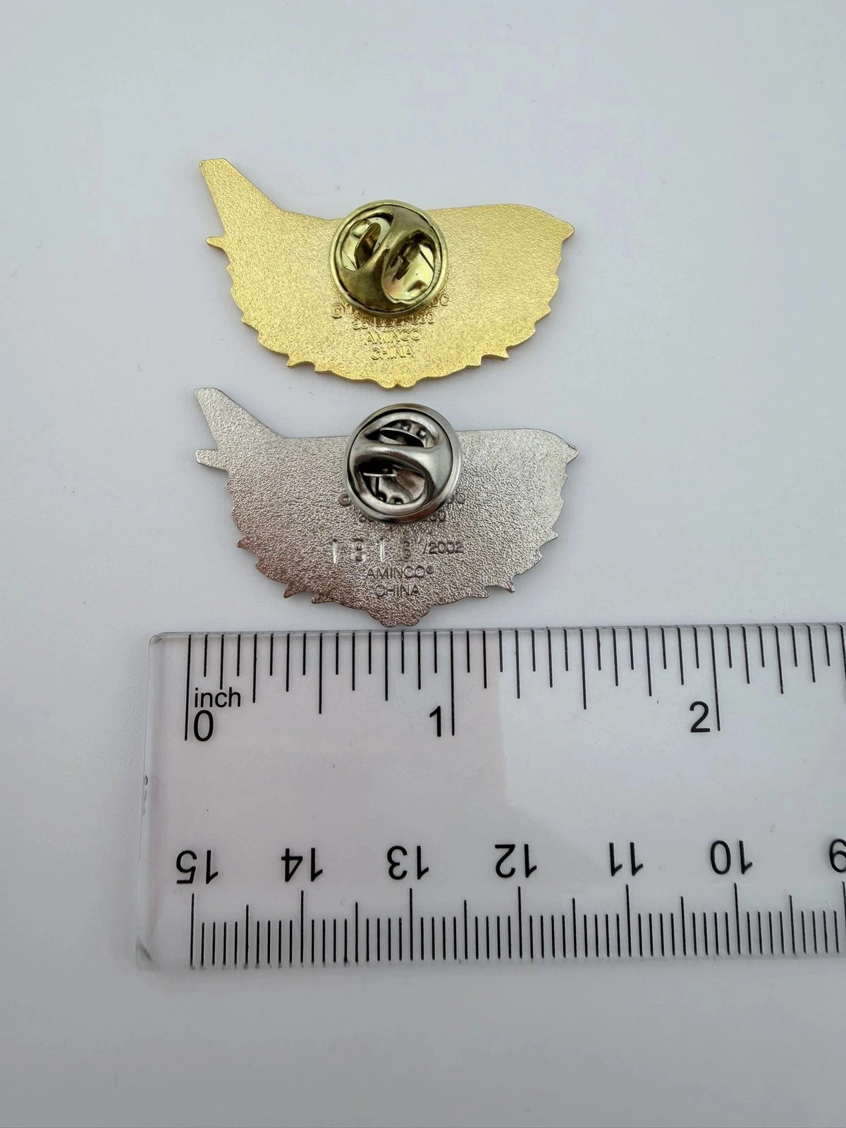 Condition: Used with minor marks on all pins, but the silver tone + gold tone shown on the mid-left + bottom-left of the first image both have small scratch marks. Photo #6 shows what they look like. Please review all photos for exact condition of item and size.