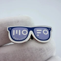 This pin is shaped like a pair of glasses with a purple frame and light purple lenses. One lens displays the text SAP 2022, creating a clean and modern tech-themed design.