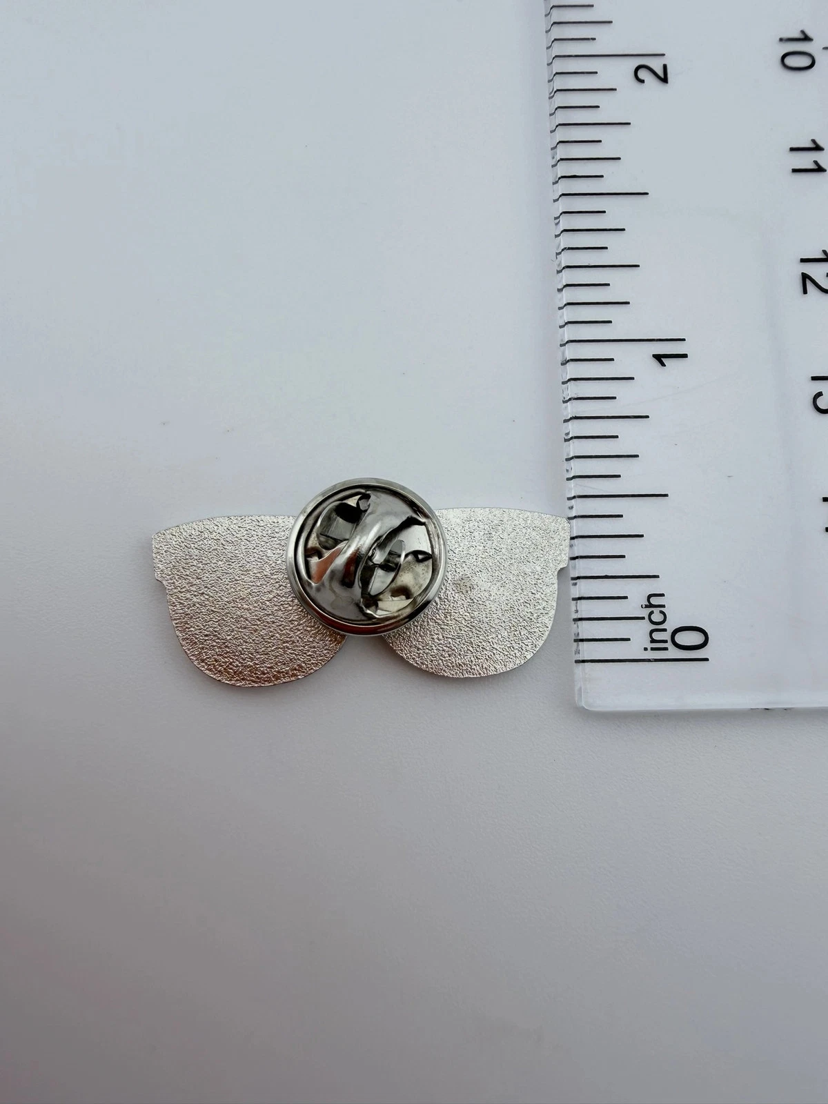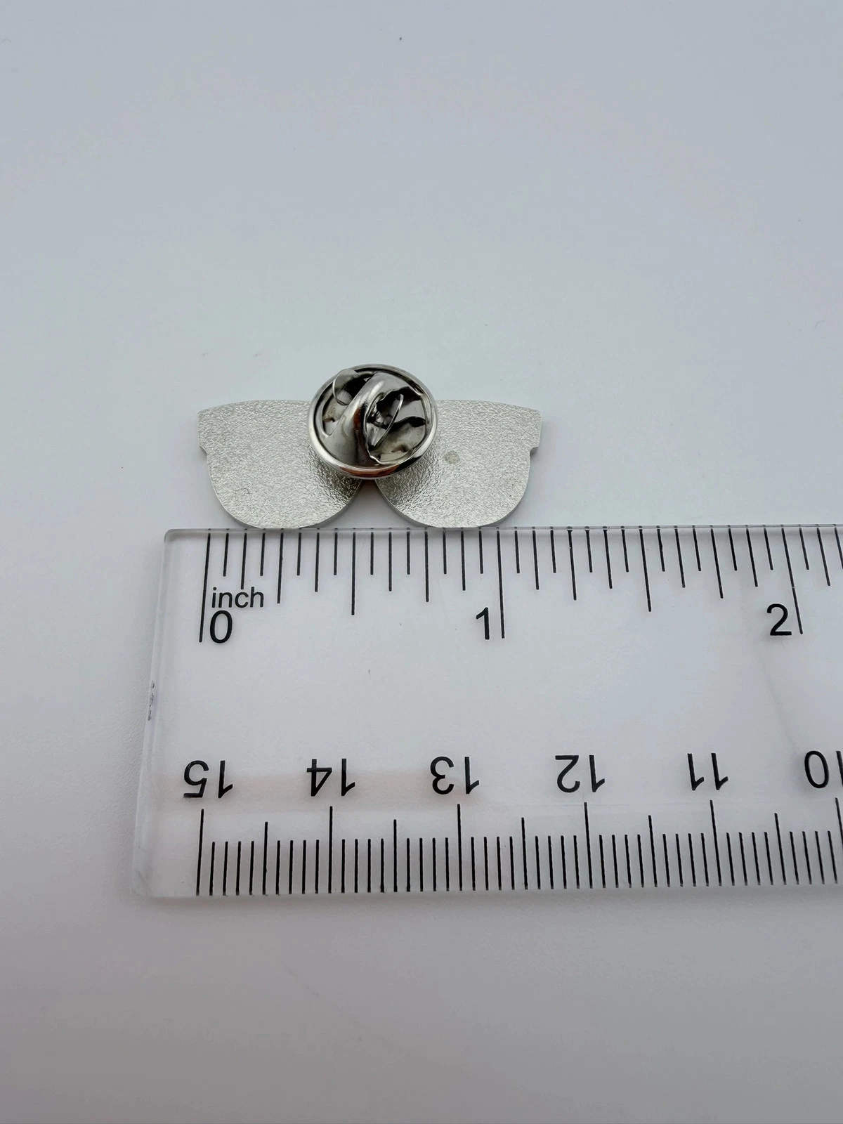 Pin measures approximately 1 inch in width by 1/2 inch in height.