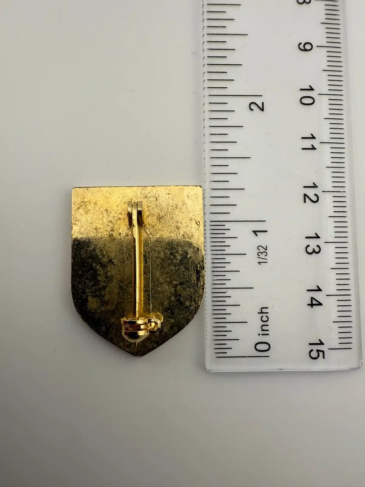Used with minor marks here and there and enamel flaws (to the left of word SKI in blue enamel). Rear of pin is marked up. Pin has a nice thickness to it, quite nice in my opinion. Please see all photos for exact condition of item and size.