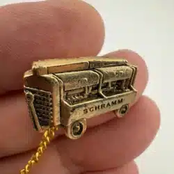 Depicted on this pin is a piece of wheeled equipment with the name “Schramm” shown along the side. The design suggests industrial machinery, with a compact, side-profile layout emphasizing the equipment form.
