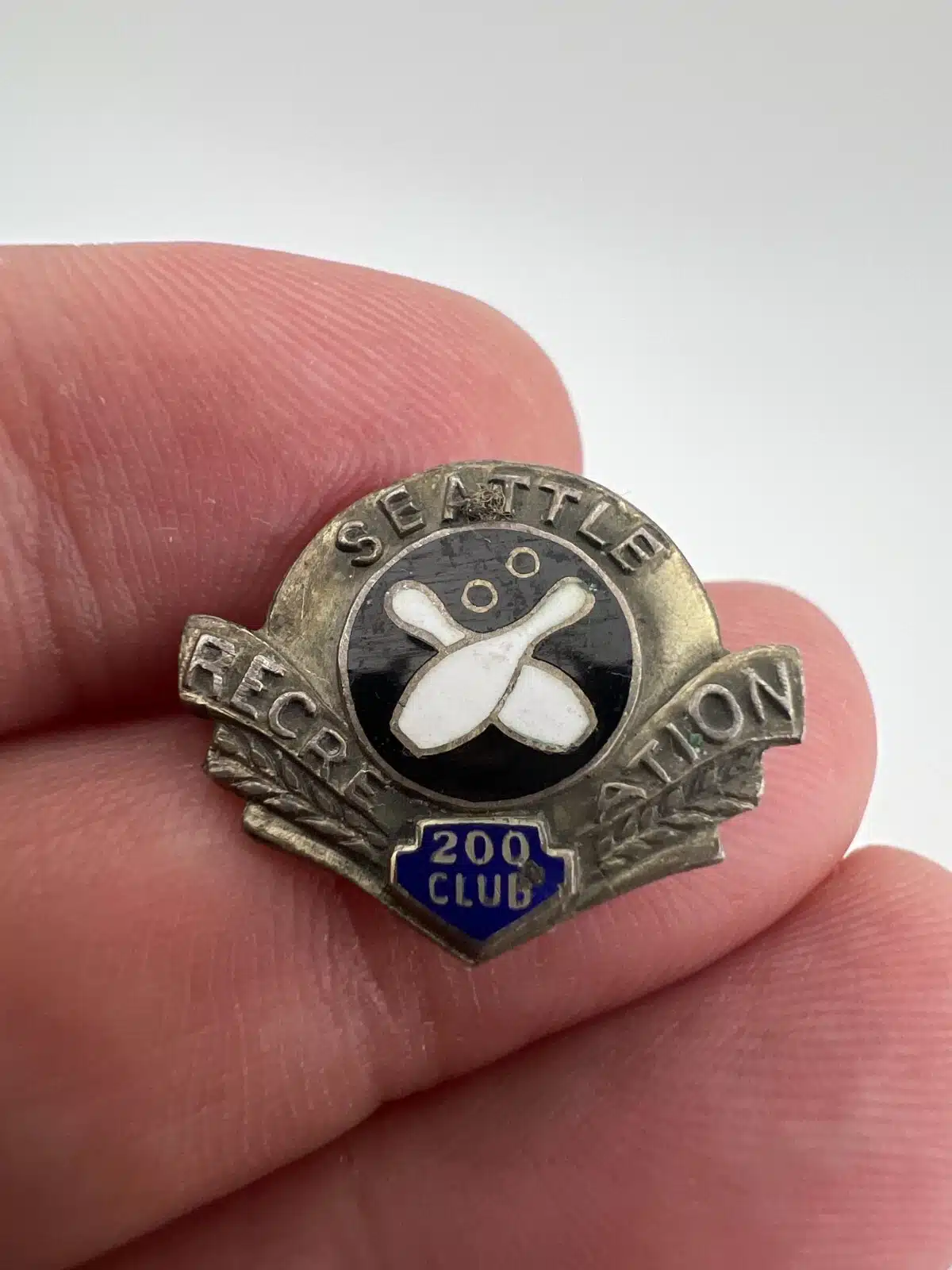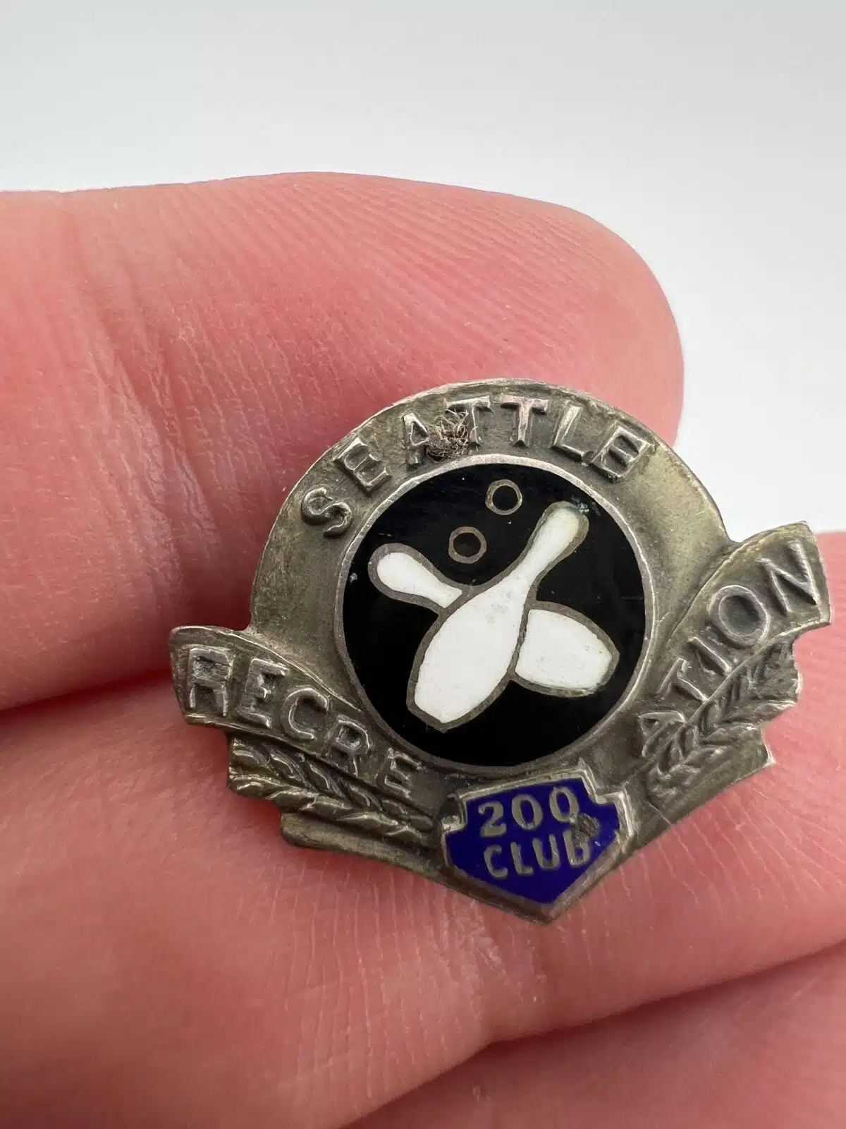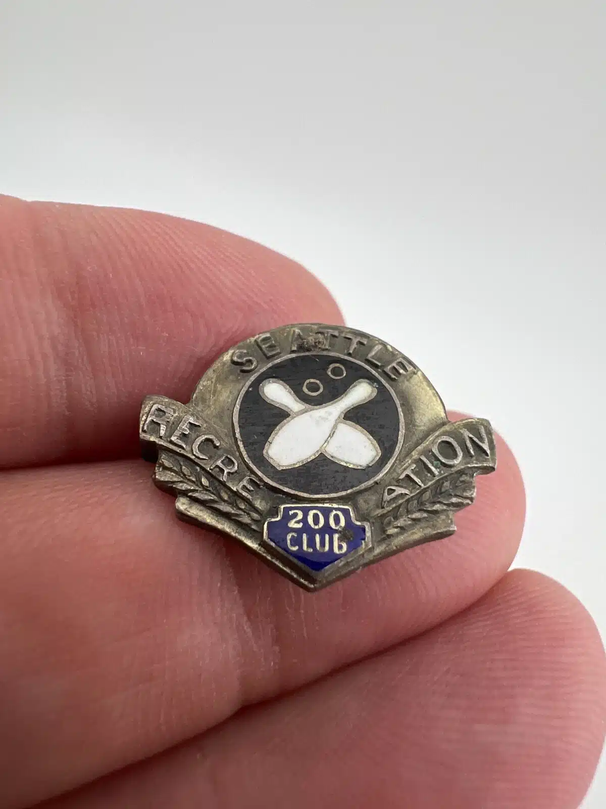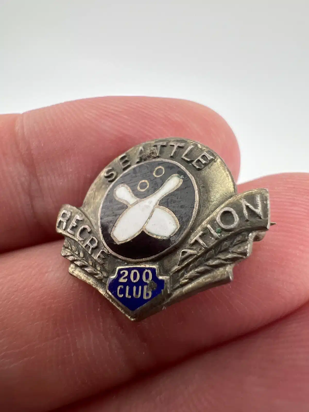 Seattle Recreation 200 Club Bowling Brooch Pin – Sterling – Used with buildup