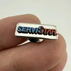 This tie tack pin features the Servistar logo, a recognizable emblem associated with the hardware store chain that was acquired by True Value. The design reflects the brand’s commitment to quality and service in the hardware retail industry.