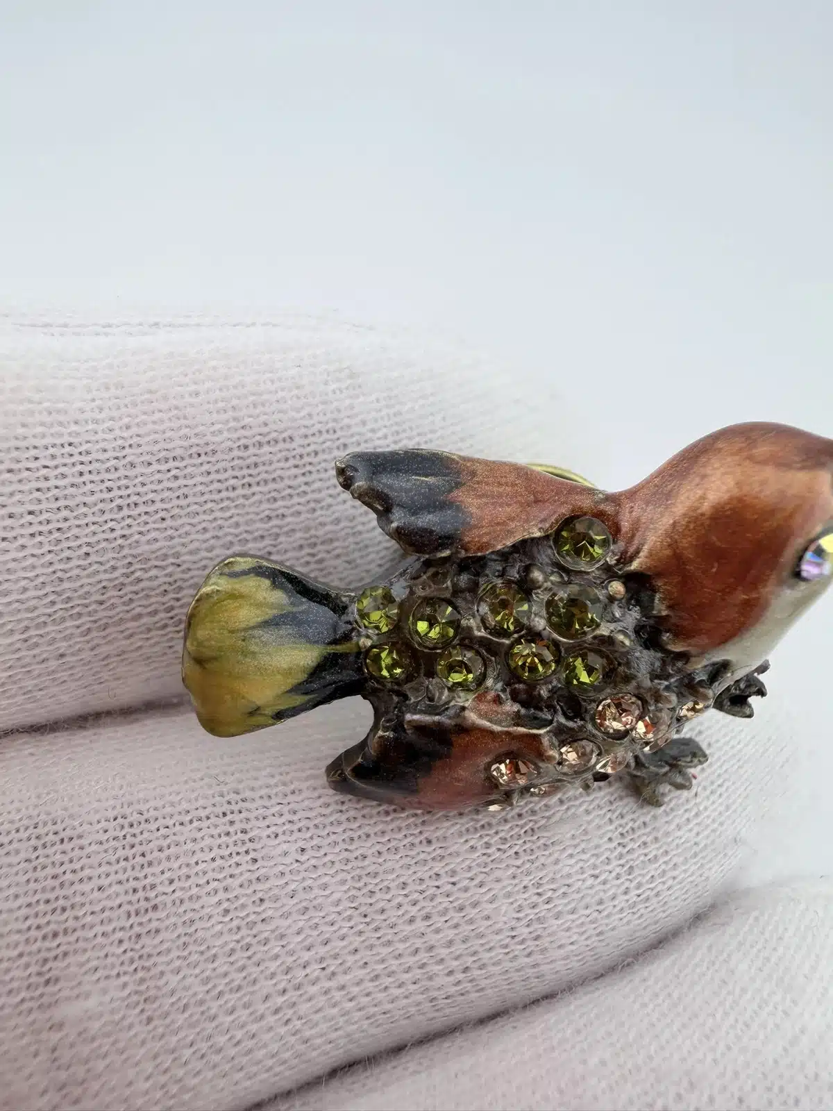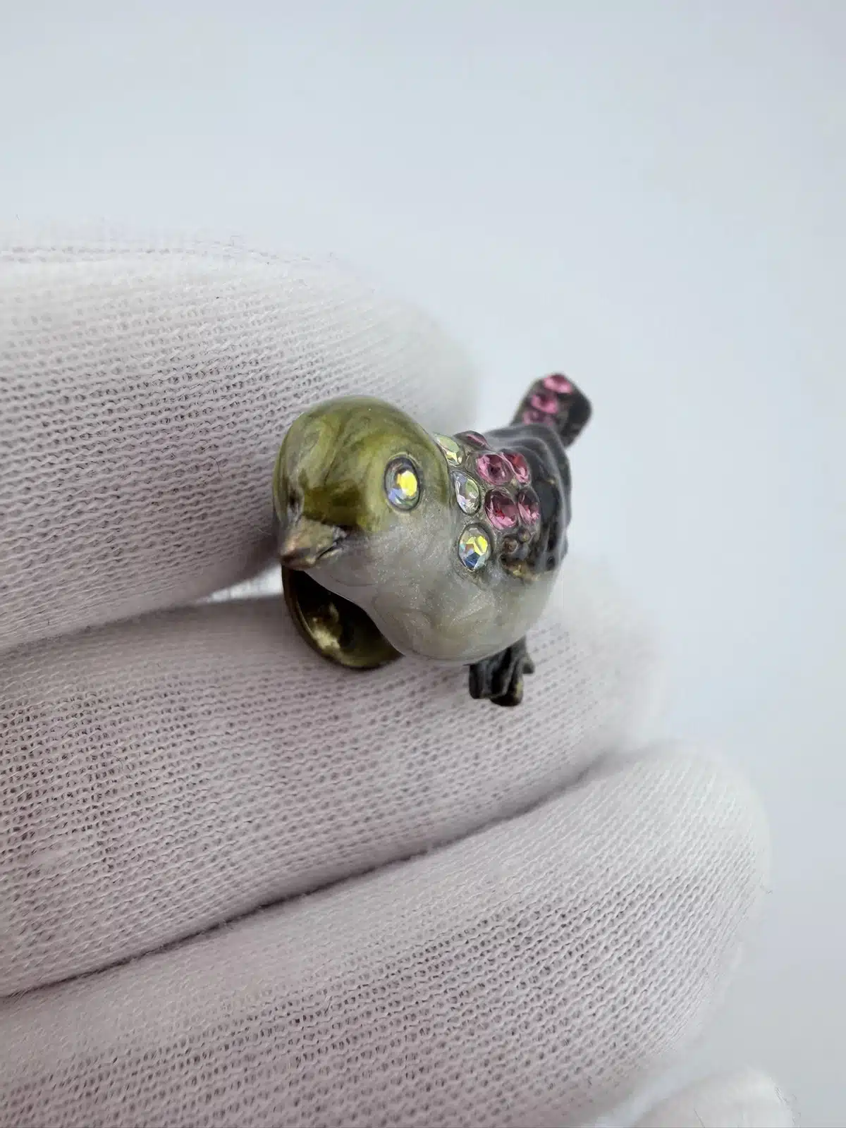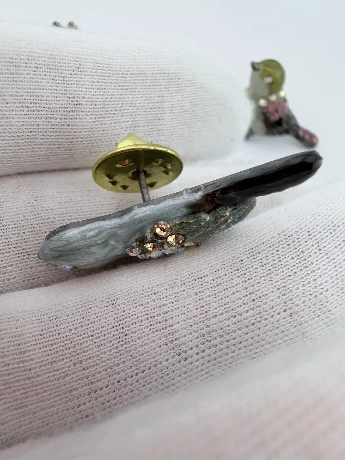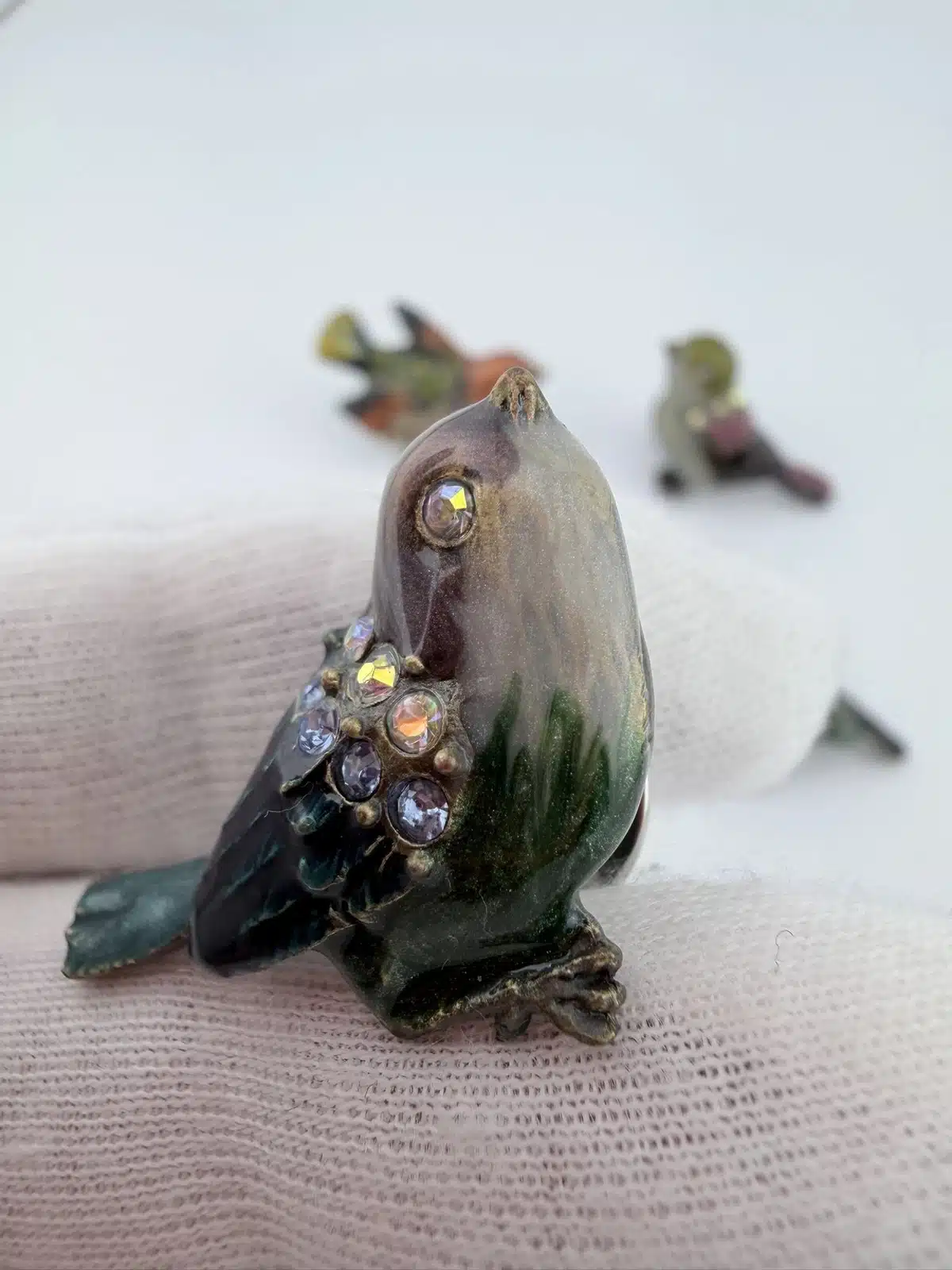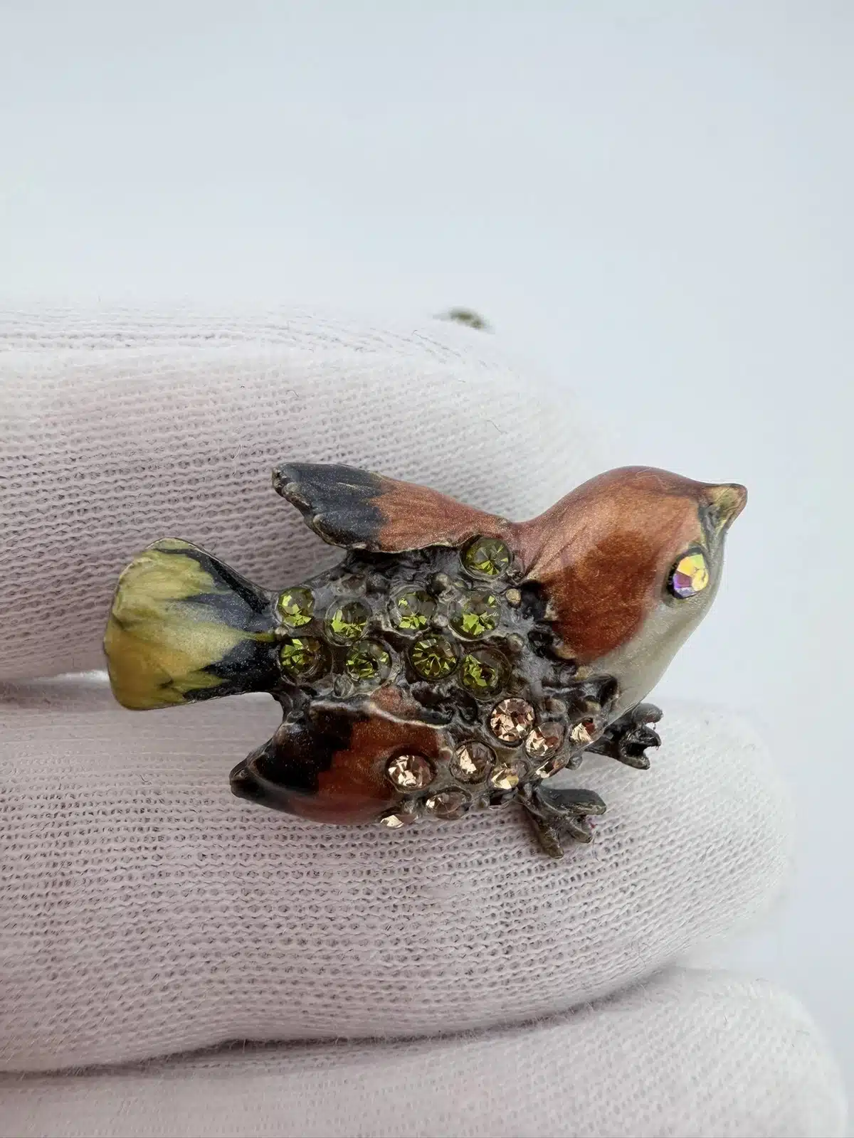 This set of 4 small bird lapel pins showcases intricate 3D designs, each uniquely adorned with colorful rhinestones that enhance their visual appeal. The variety of birds reflects a charming celebration of avian beauty and diversity. Each pin is approximately 1″ in width and 3/4″ in height.