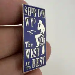 This pin features a cowboy figure holding a lasso, embodying the rugged spirit of the American West. Celebrating Sheridan, Wyoming, it captures the essence of cowboy culture and the historical significance of the region in the development of the frontier.