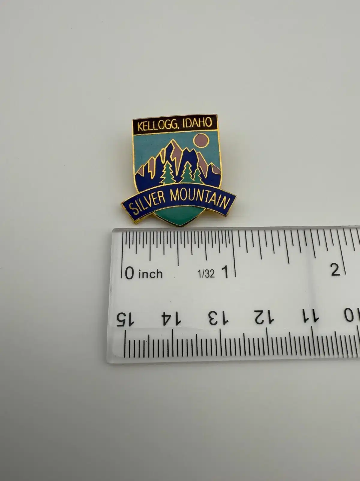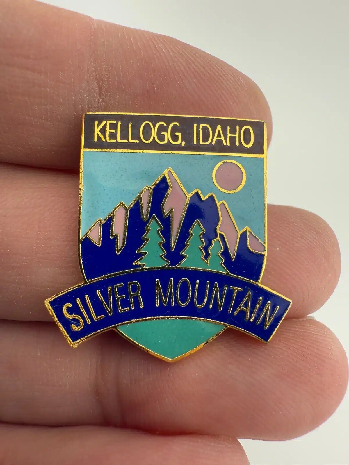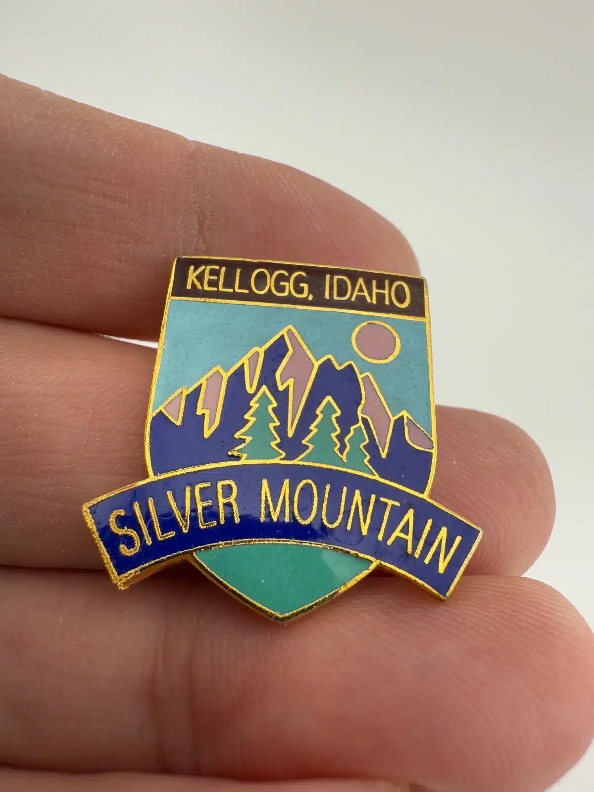 Silver Mountain Resort Kellogg Idaho Ski Pin with Mountain, Sun, and Trees