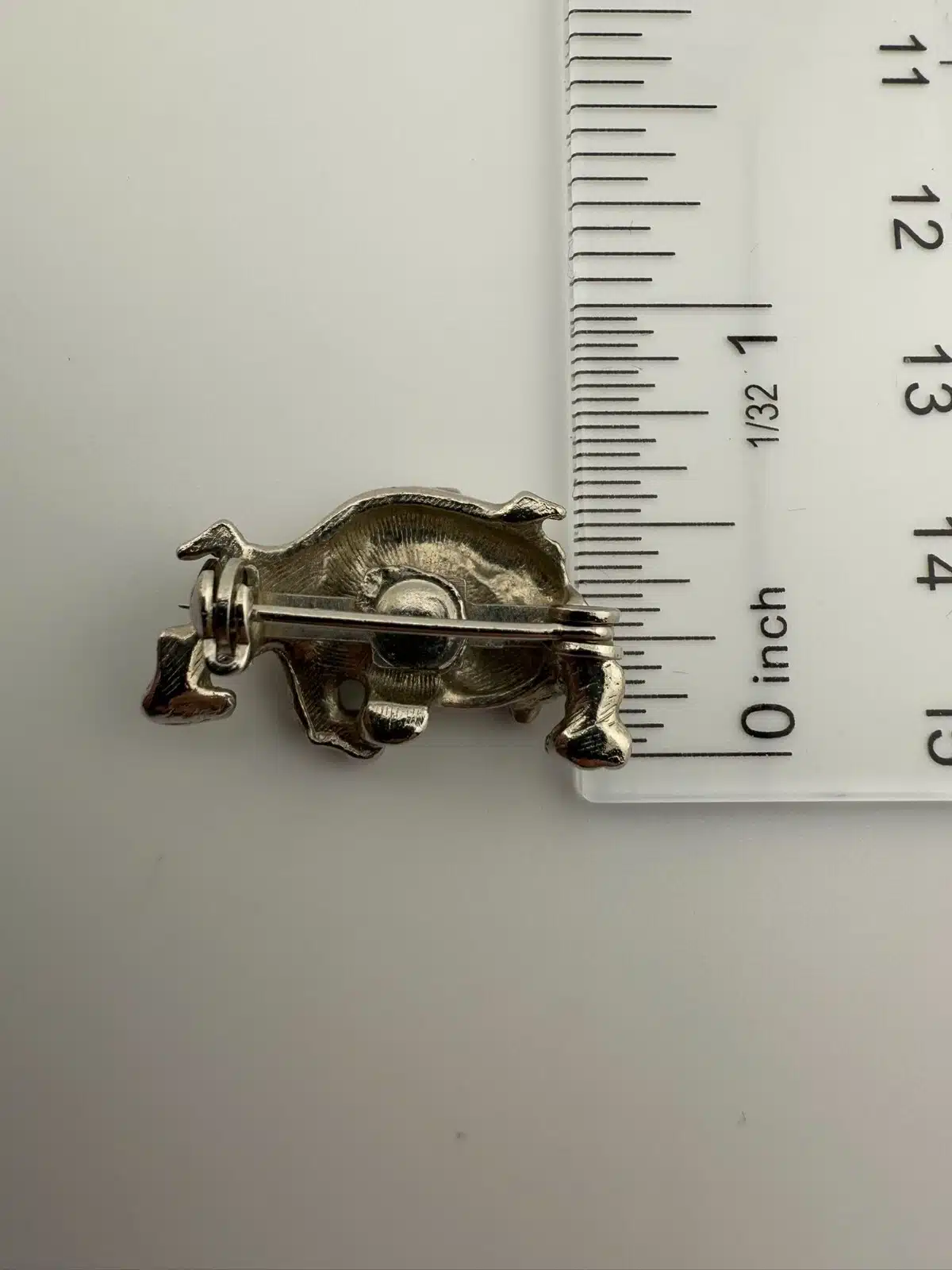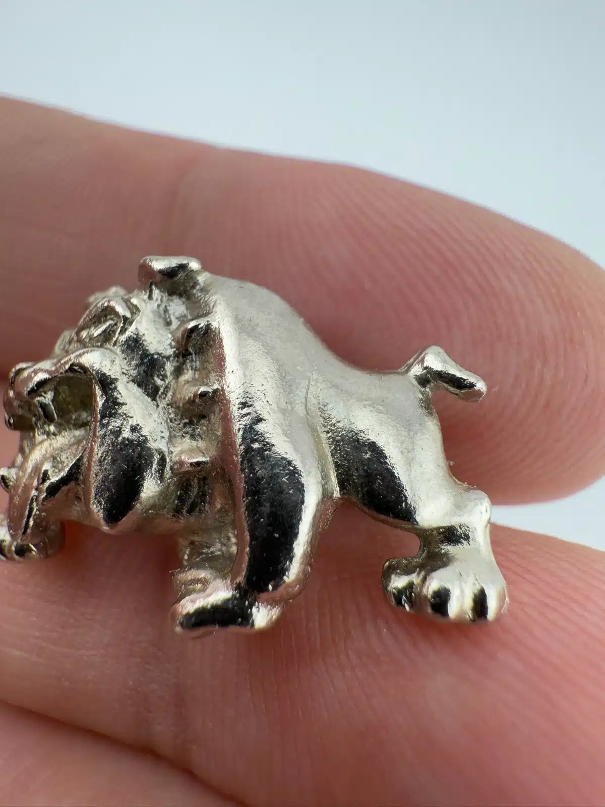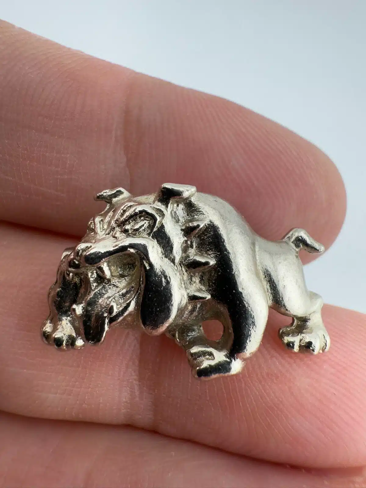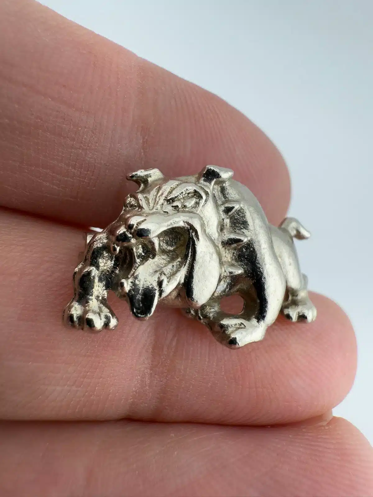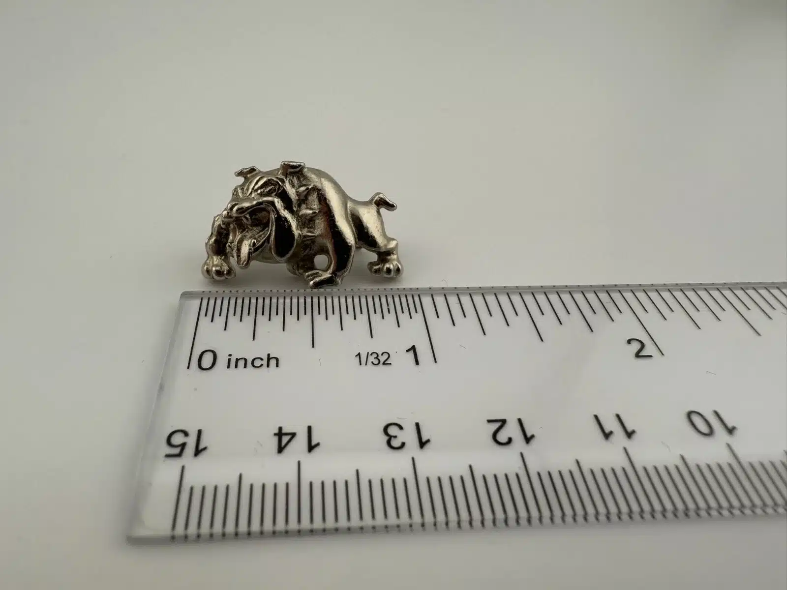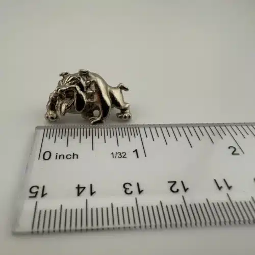 Used with minor marks, unknown metal, bulldog with collar pin. Please see all photos for exact condition of item and size.