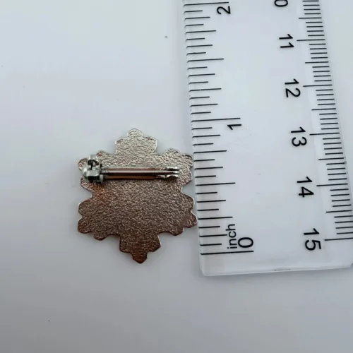 The pin measures approximately 1 inch in width by 1 inch in height.