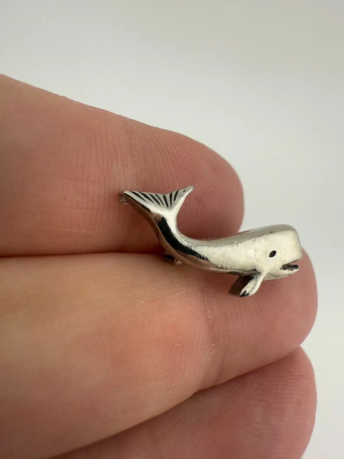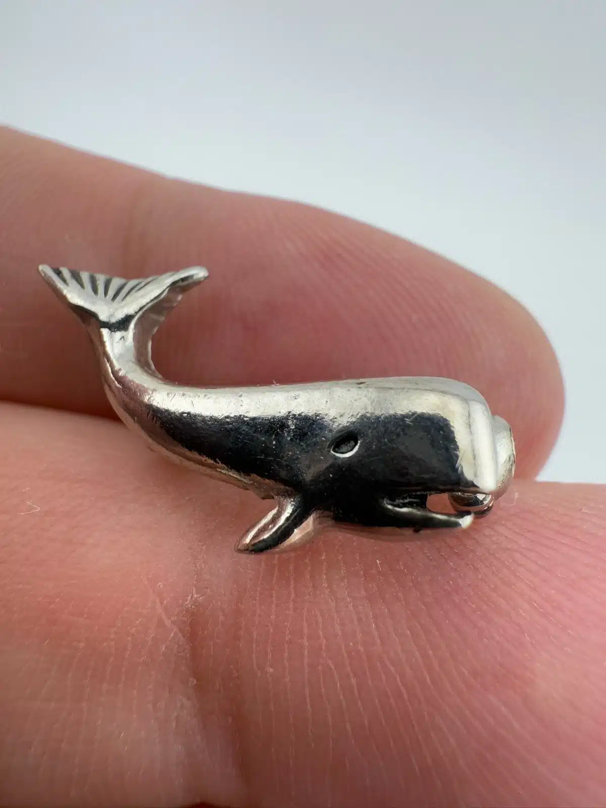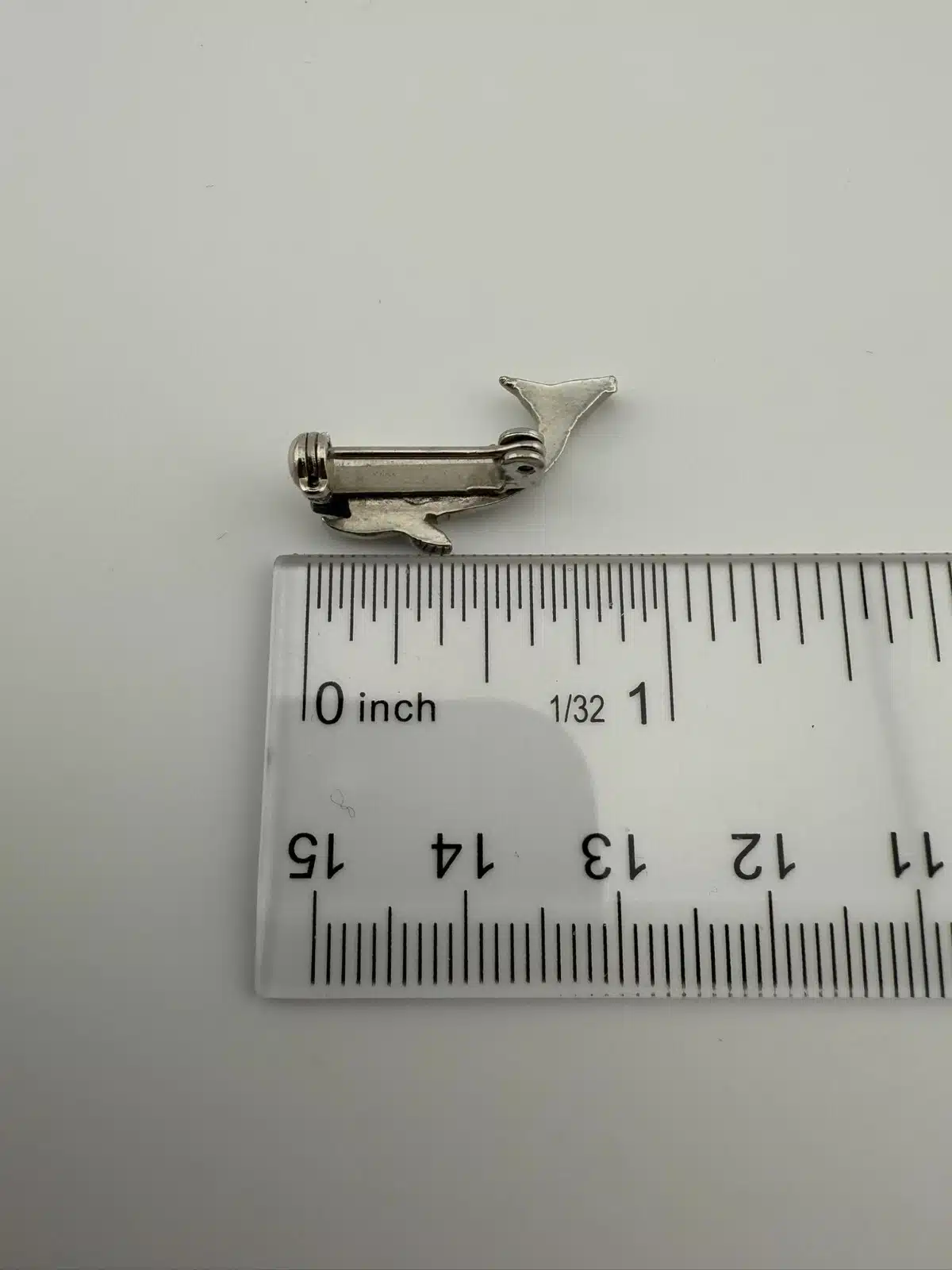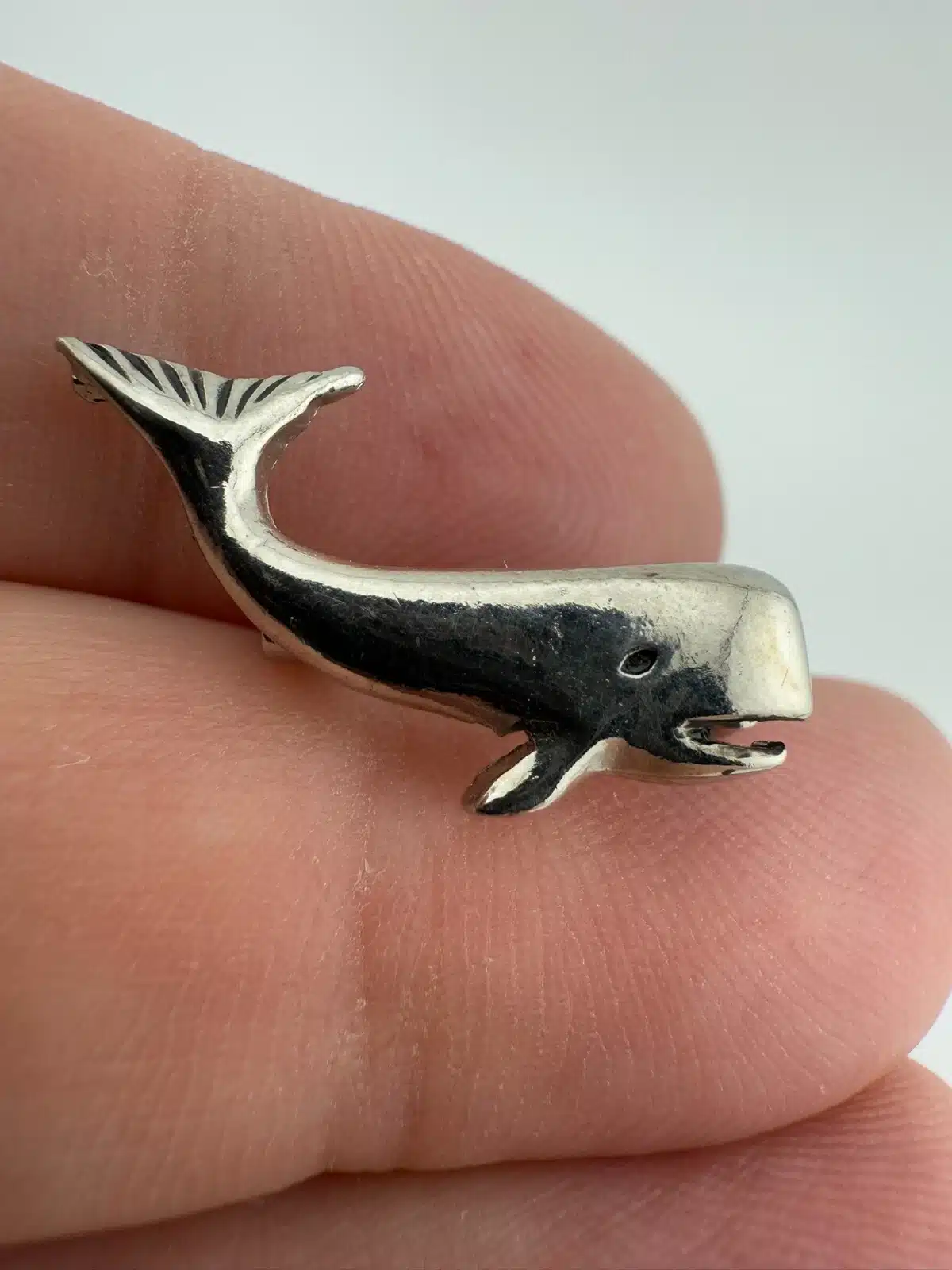 Smiling Sperm Whale Pin Brooch – Silver Tone – Used