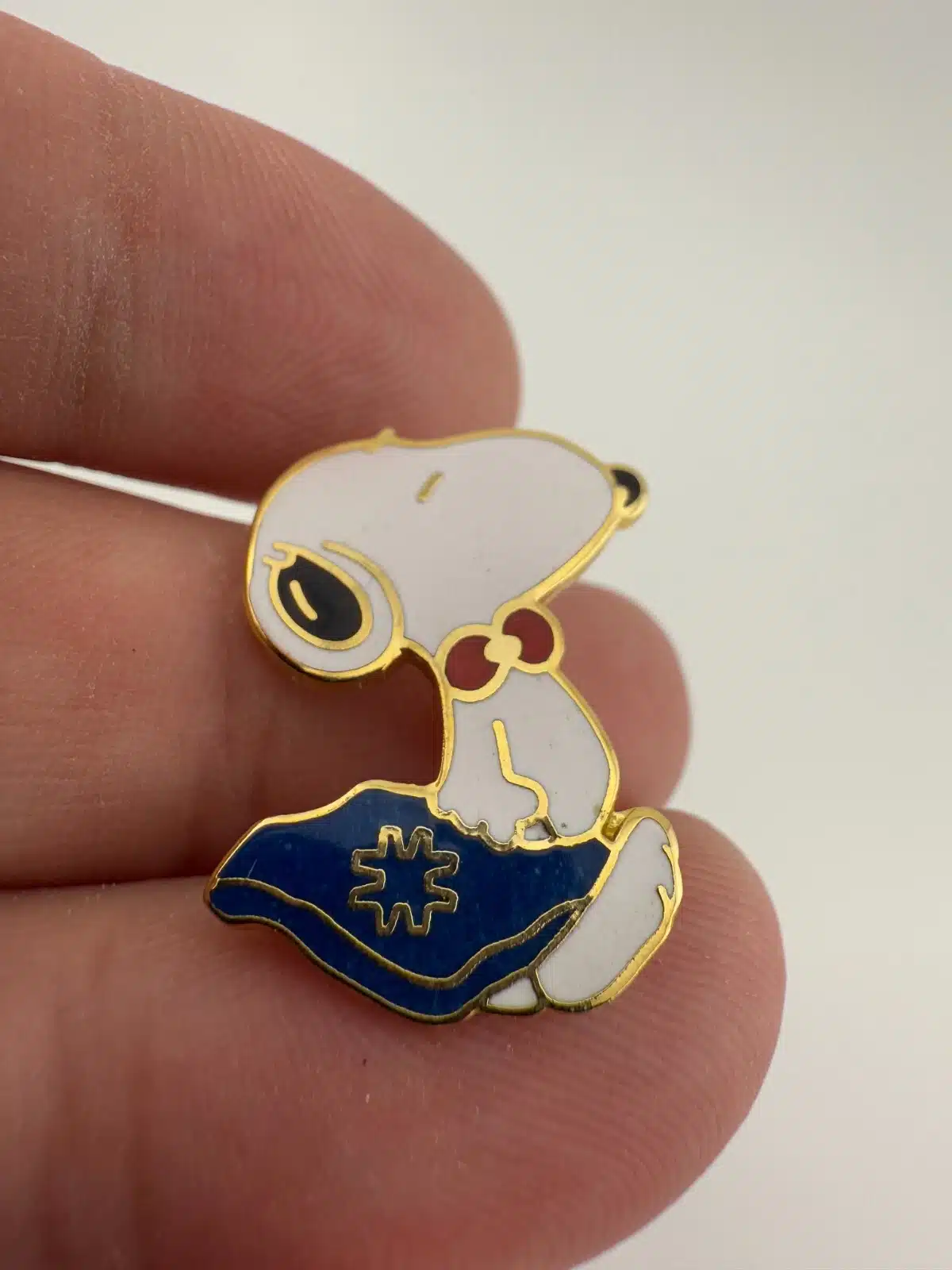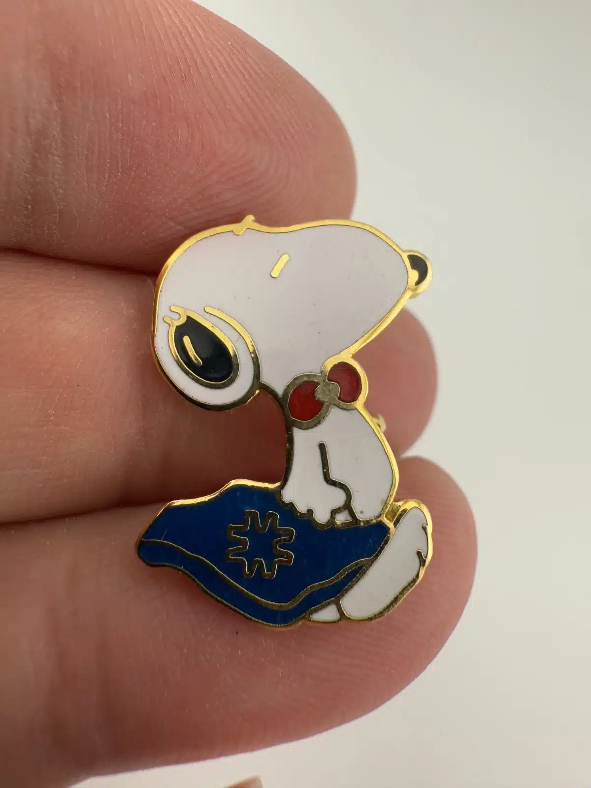 Snoopy Holding A Flag Pillow Lapel Pin – Schulz United Feature Syndicate 1958