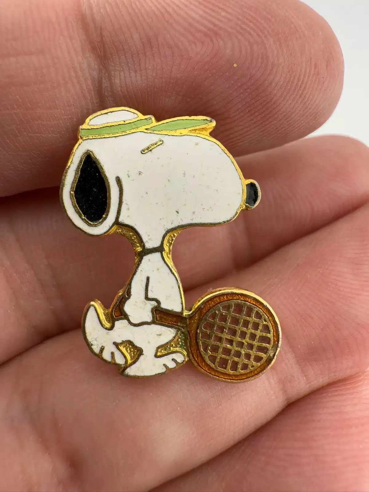 Snoopy Playing Tennis Pin Brooch – United Features – *Read Description*