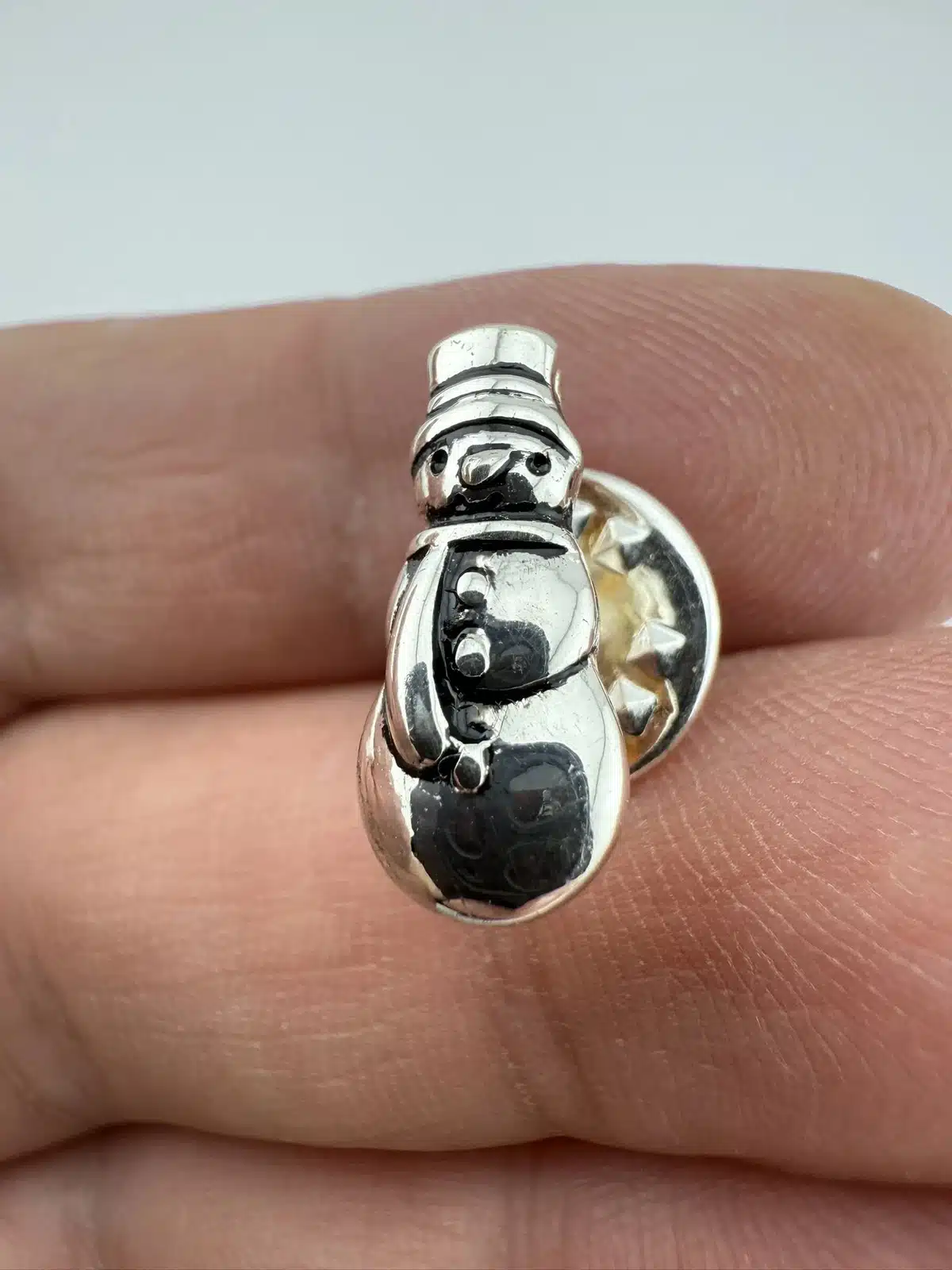 Snowman Lapel Hat Pin – Silver Tone – Small