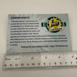 The Southern California Metrolink 15th Anniversary pin from 2007.