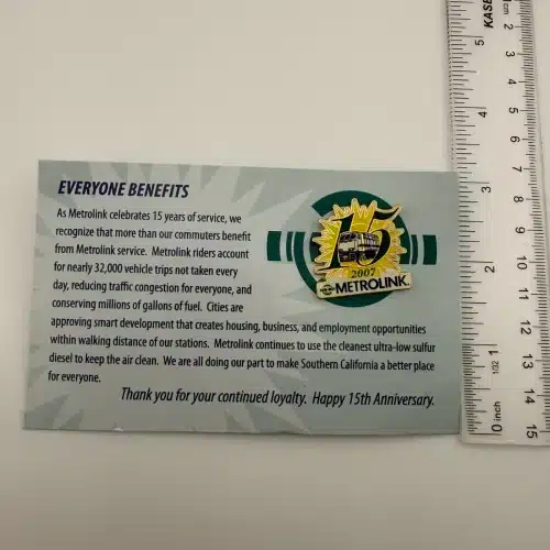 Southern California Metrolink 15th Anniversary Pin – 2007