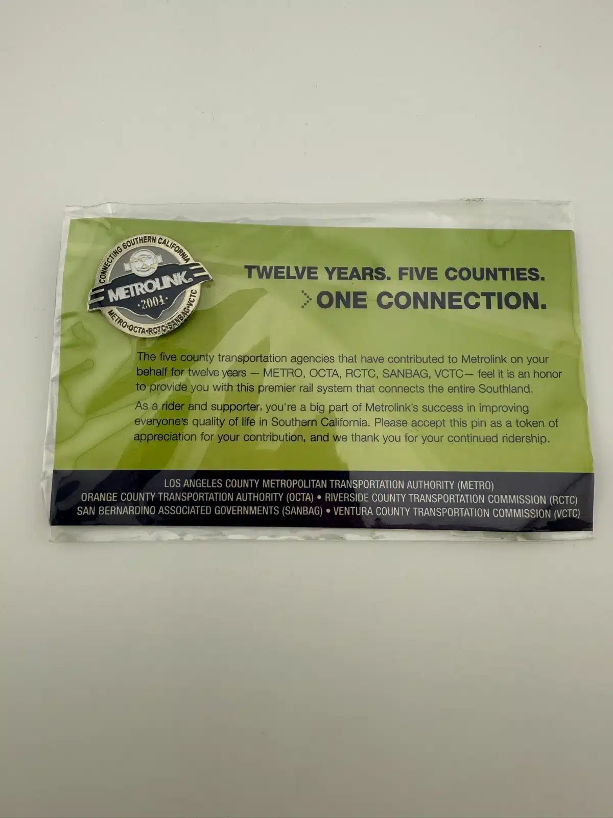 2004 Southern California Metrolink pin – unopened!