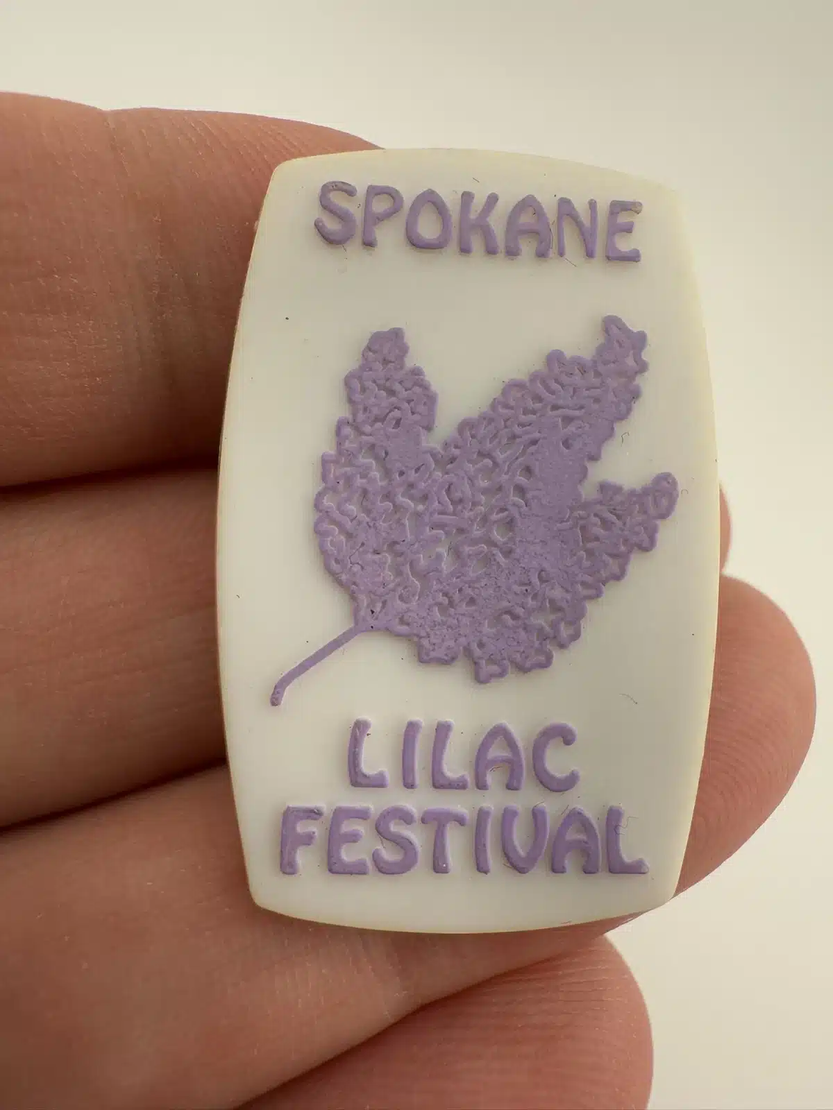 Spokane Lilac Festival Lapel Hat Pin – Plastic – Unknown Age – Washington State