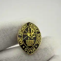 This pin features the emblem of St. Anthony Catholic School, which was established in Guam in 1960, showcasing its significance in the local community. Beautiful rare item which is likely vintage.