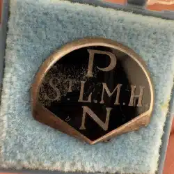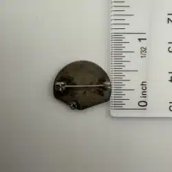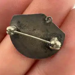 Used with marks including some form of corrosion or flaw on the left side of the pin. Pin does not have a LGBalfour hallmark, so possibly an unrelated case. Initialed AKO on rear.