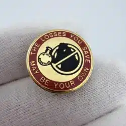 Unknown pin with the words ‘The Losses You Save May Be Your Own’ and a horse graphic.