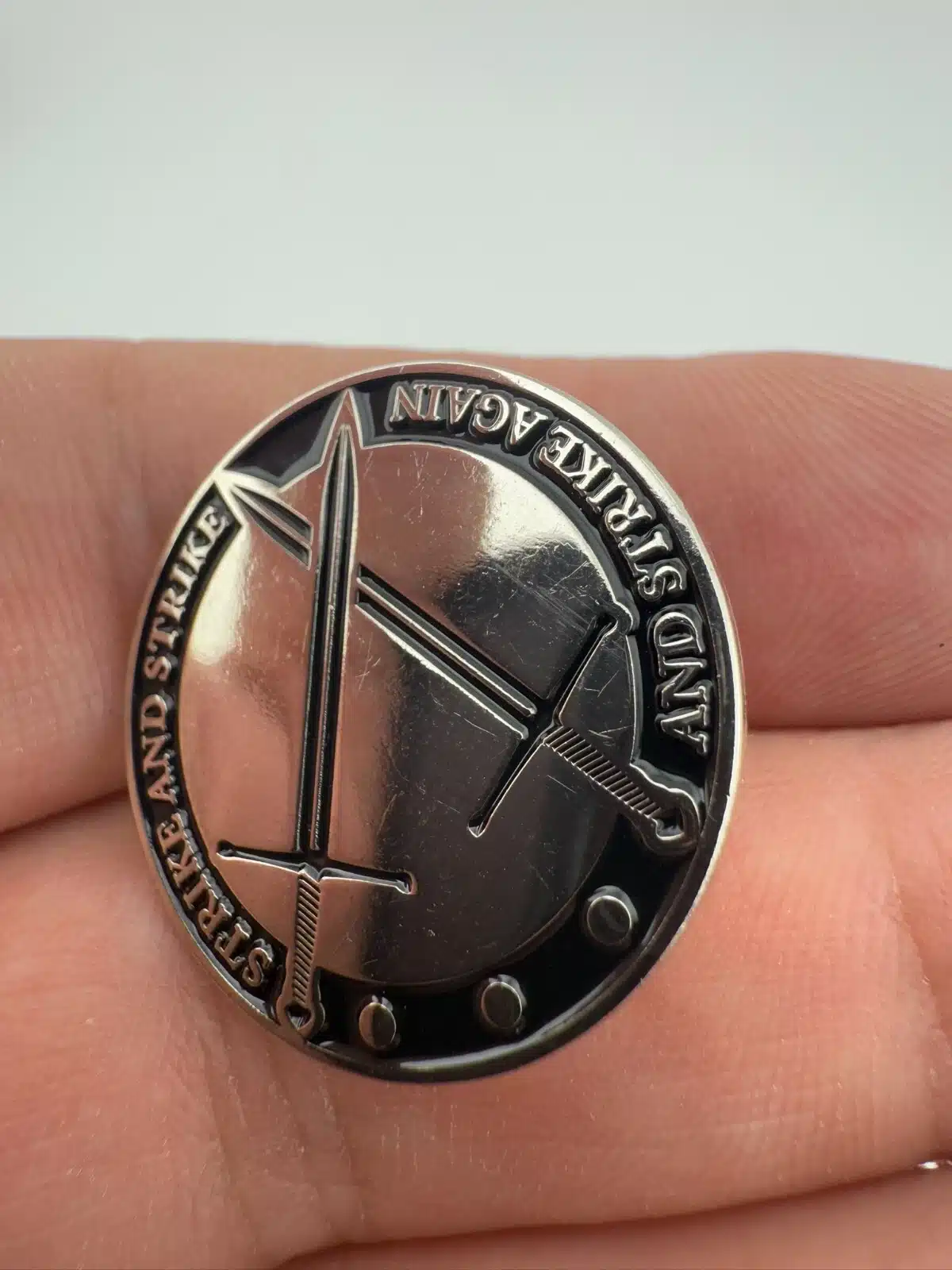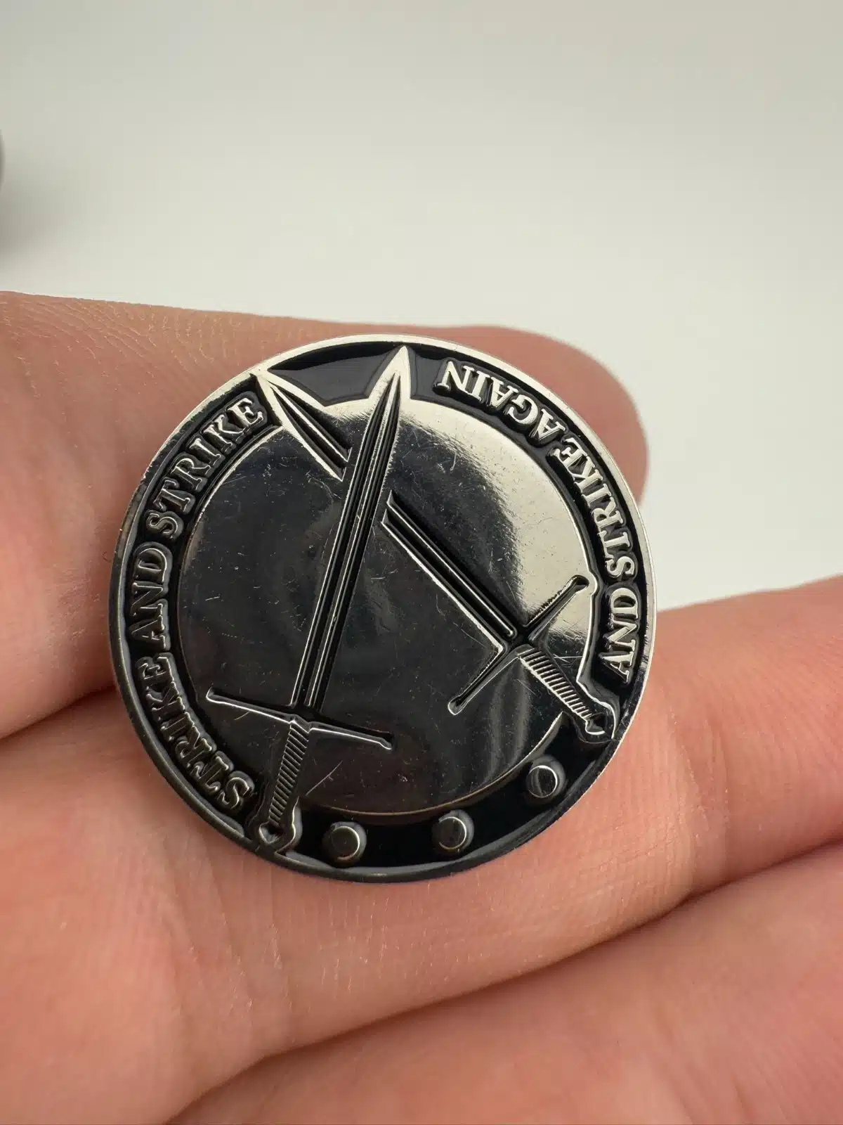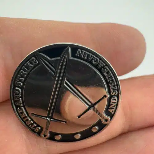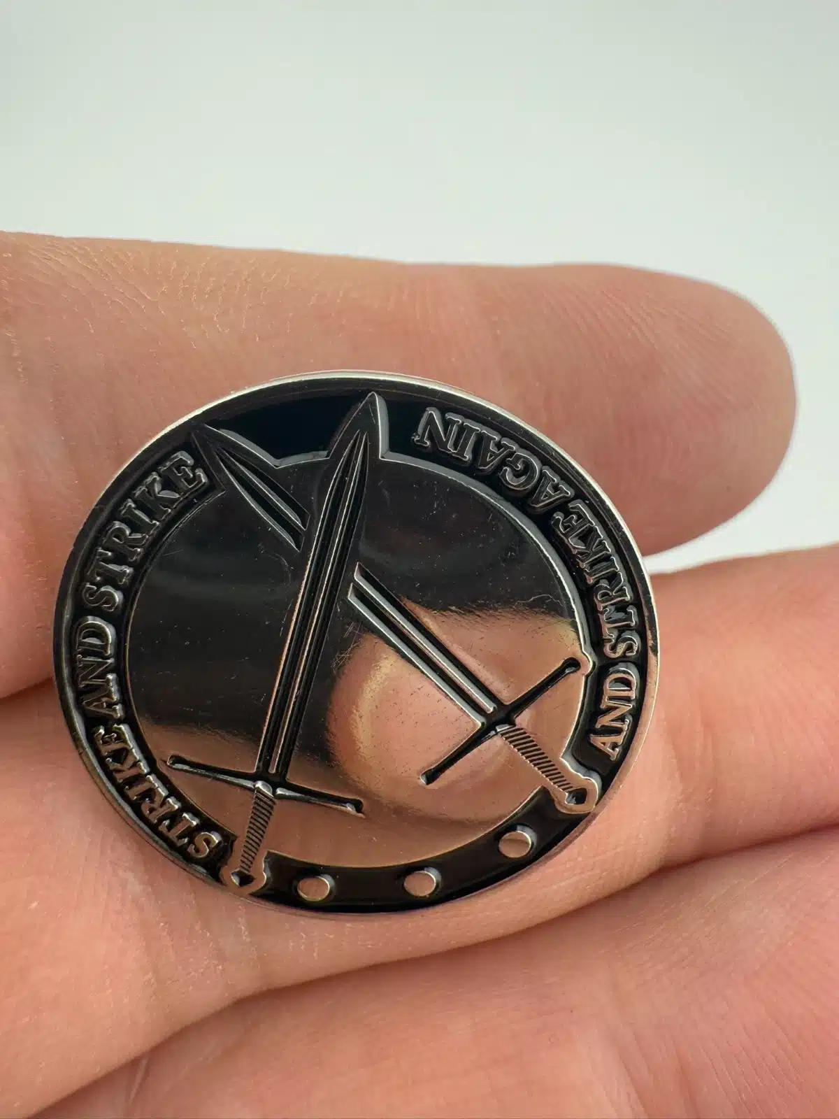 Strike and Strike and Strike Again Lapel Hat Pin – light scratches