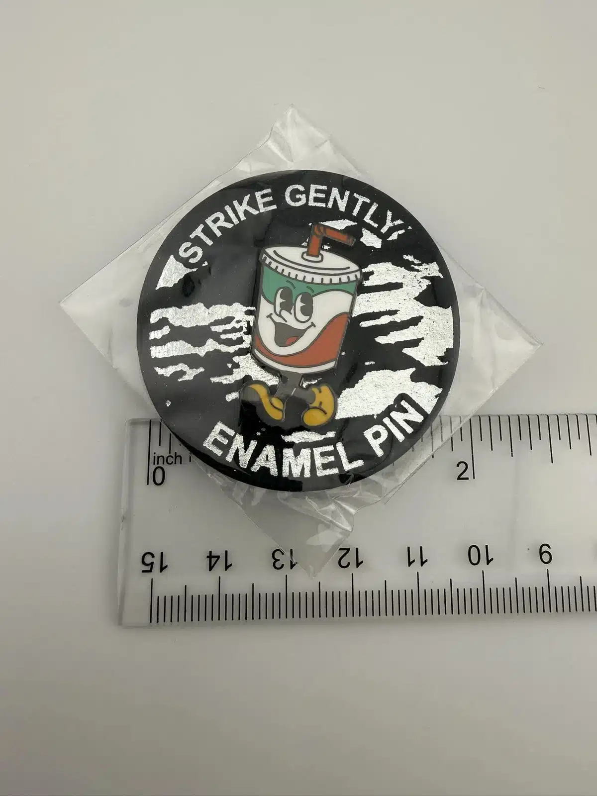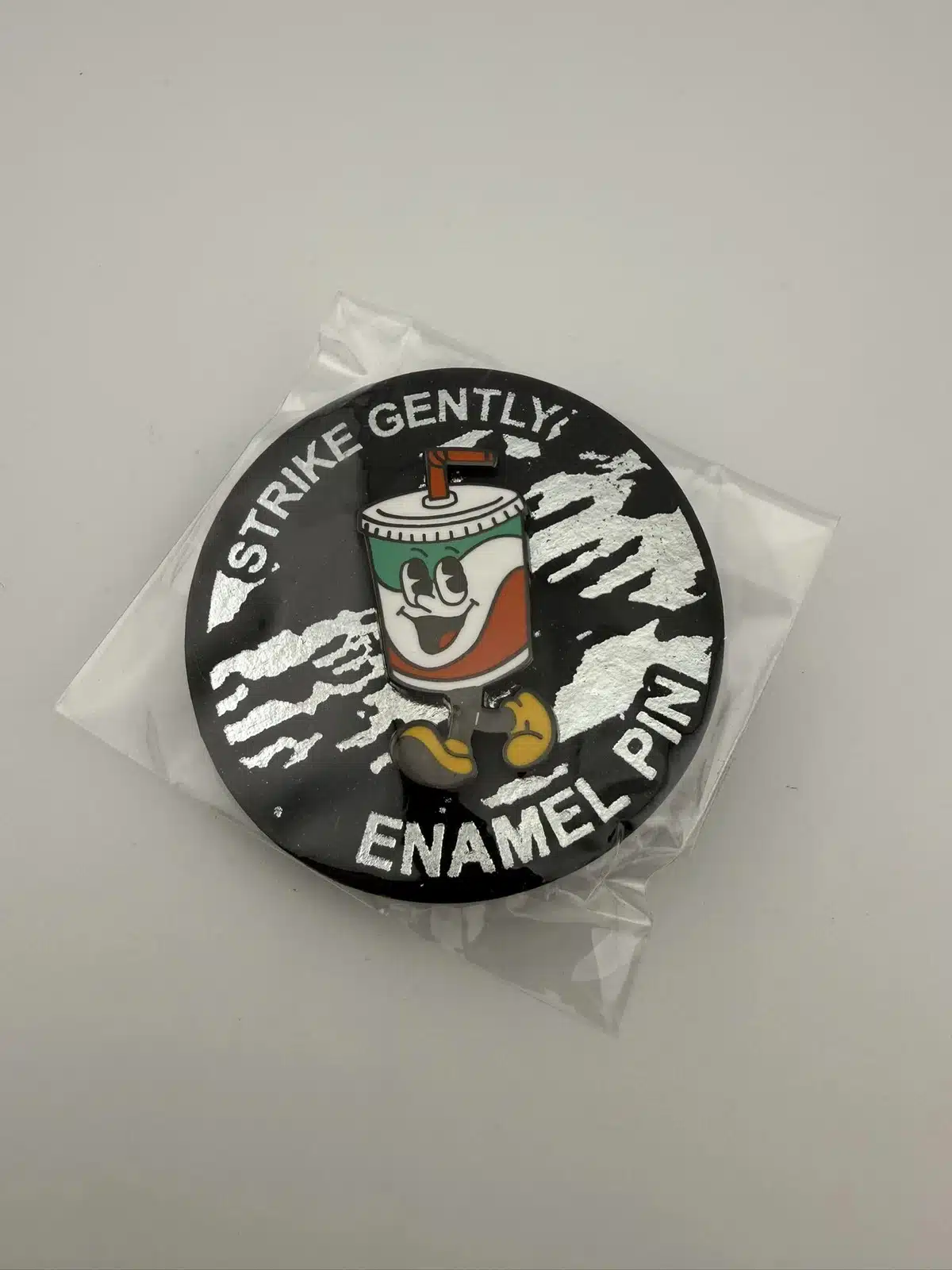 Strike Gently Soda Pop Fountain Cup Pin With Feet and Smiley Face