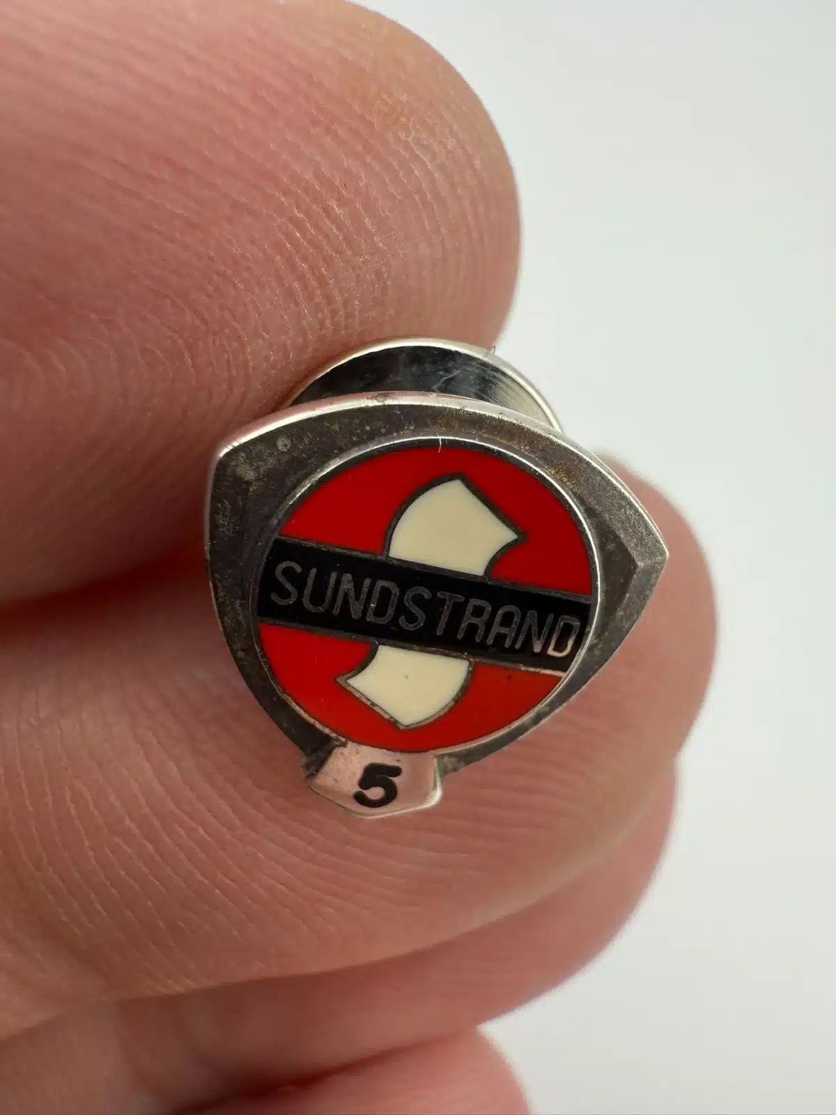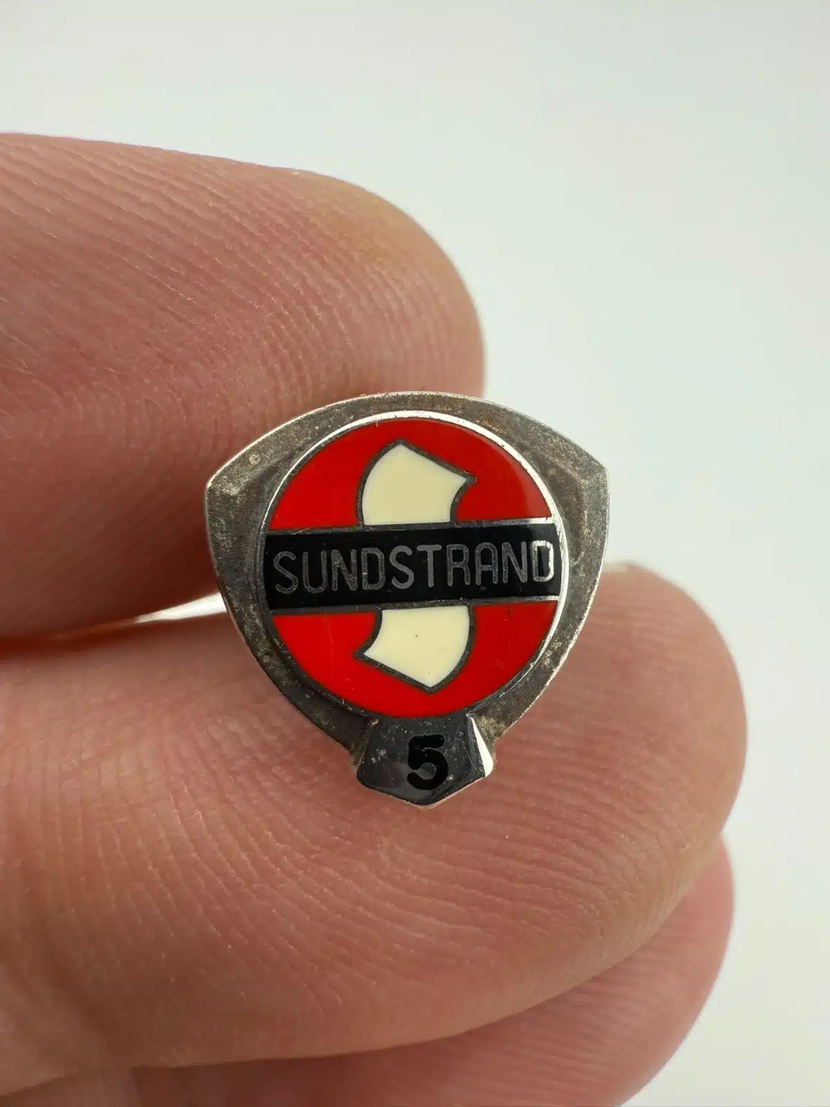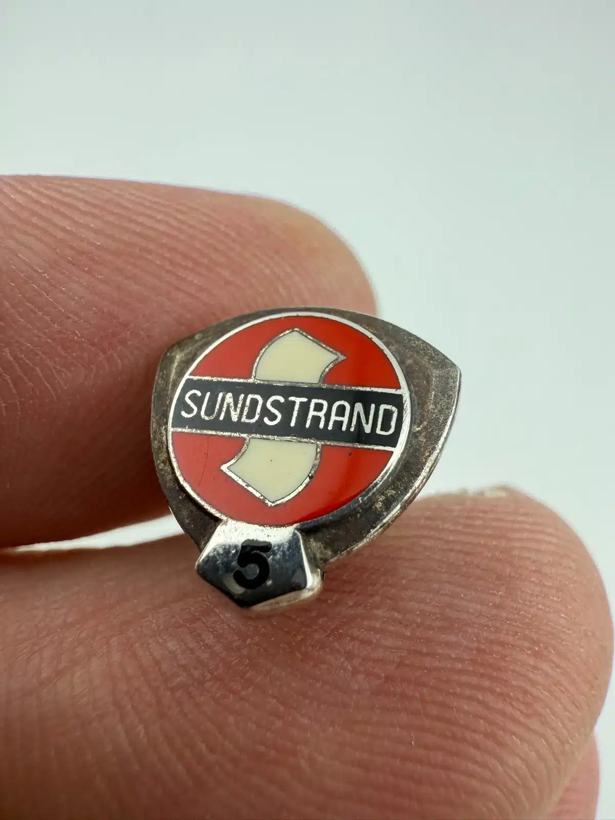 Unique sterling silver 5-year service pin from the Sundstrand Corporation – an aerospace and industrial product manufacturer.