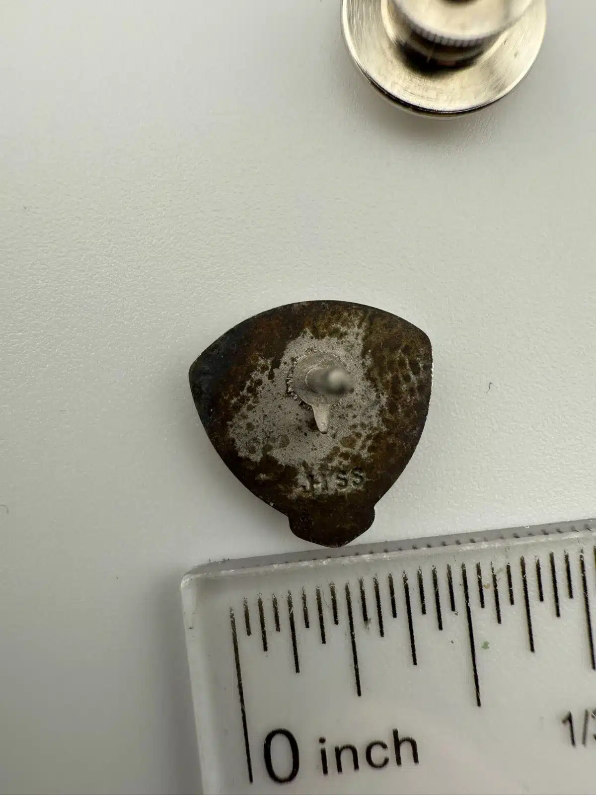 Condition: Used with marks including dings / scuff marks / aging / and some form of corrosion on outer front and most of the rear of pin. Please review all photos for exact condition of item and size.