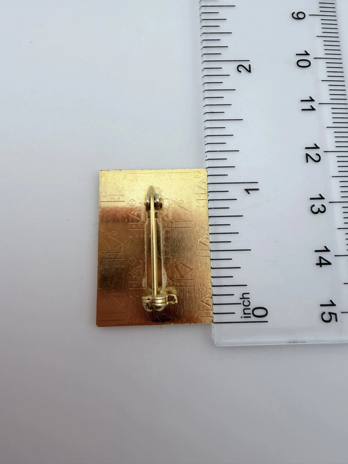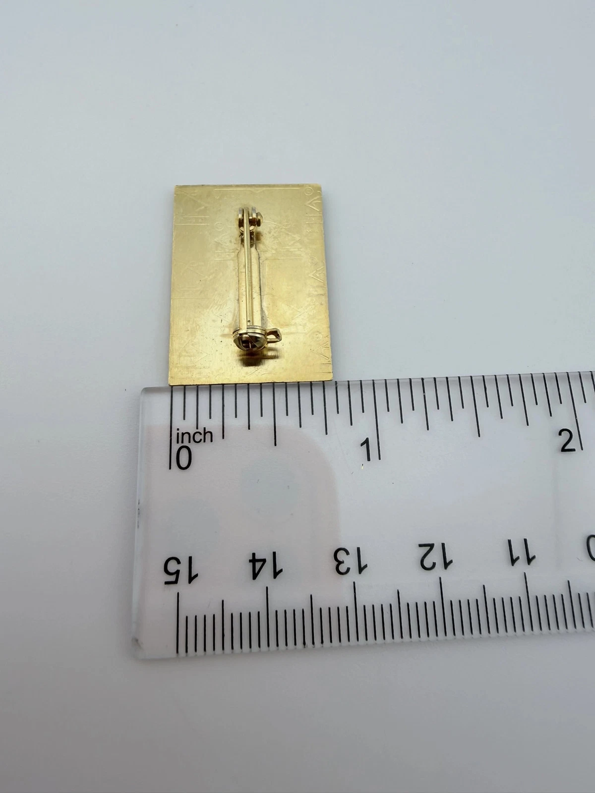 The pin measures approximately 3/4 inch in width by 1 inch in height.