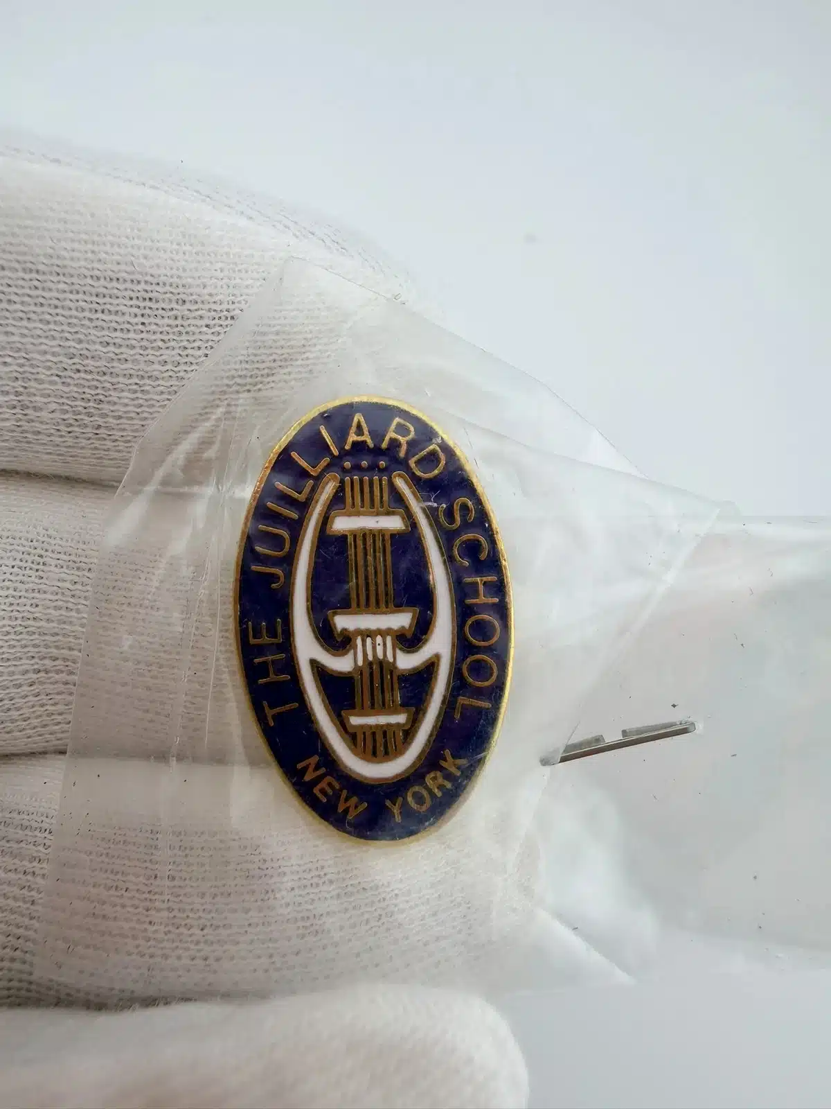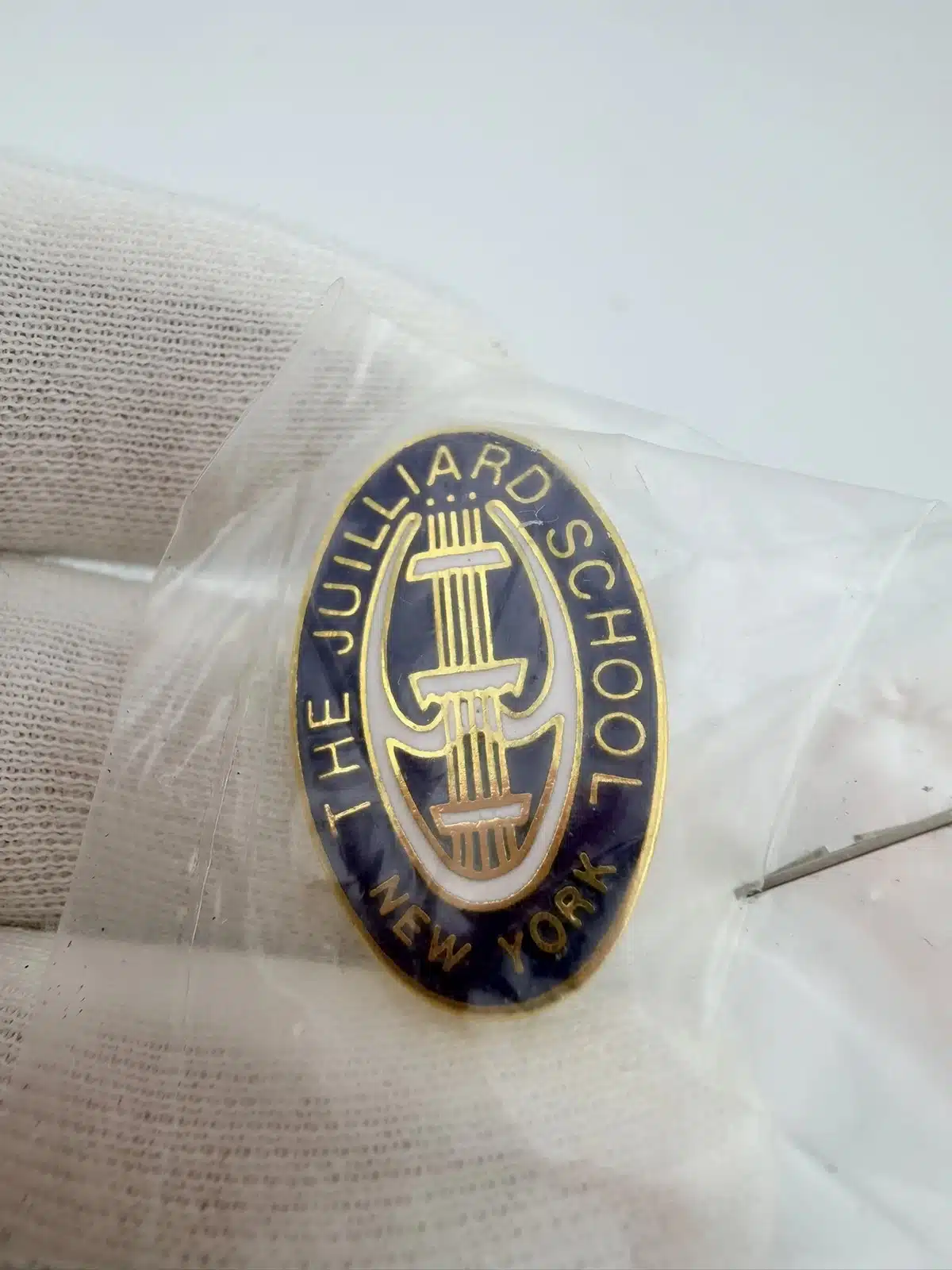 This emblem pin features a striking design in purple and white enamel, set against a gold-tone background, showcasing the prestigious Juilliard School’s commitment to excellence in the performing arts. The pin serves as a symbol of the school’s rich history and its influential role in shaping the careers of countless artists since its 1905 founding in New York by Frank Damrosch.