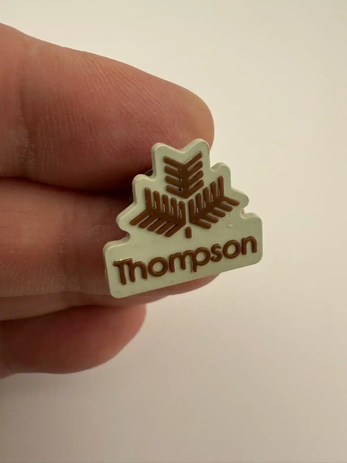 Thompson Ski Skiing Lapel Hat Pin – Plastic Pin – Vintage? Clothing Company?