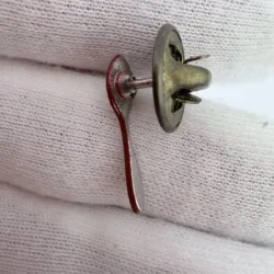 This pin is shaped like a small spoon with a red finish. The design is simple and narrow, resembling a miniature spoon form.