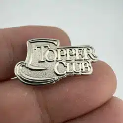 This silver tone lapel pin features the Topper Club emblem, representing the prestigious Farmers Insurance Award. The design showcases a classic motif of a top hat that highlights the achievements of top-performing agents within the Farmers Insurance organization.