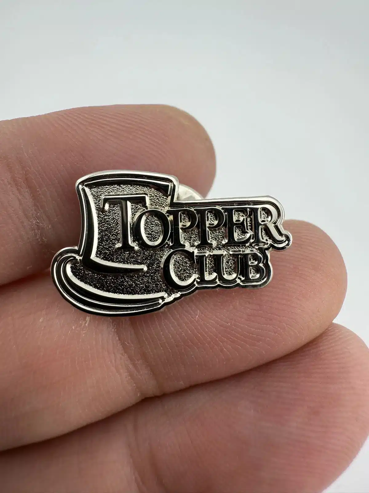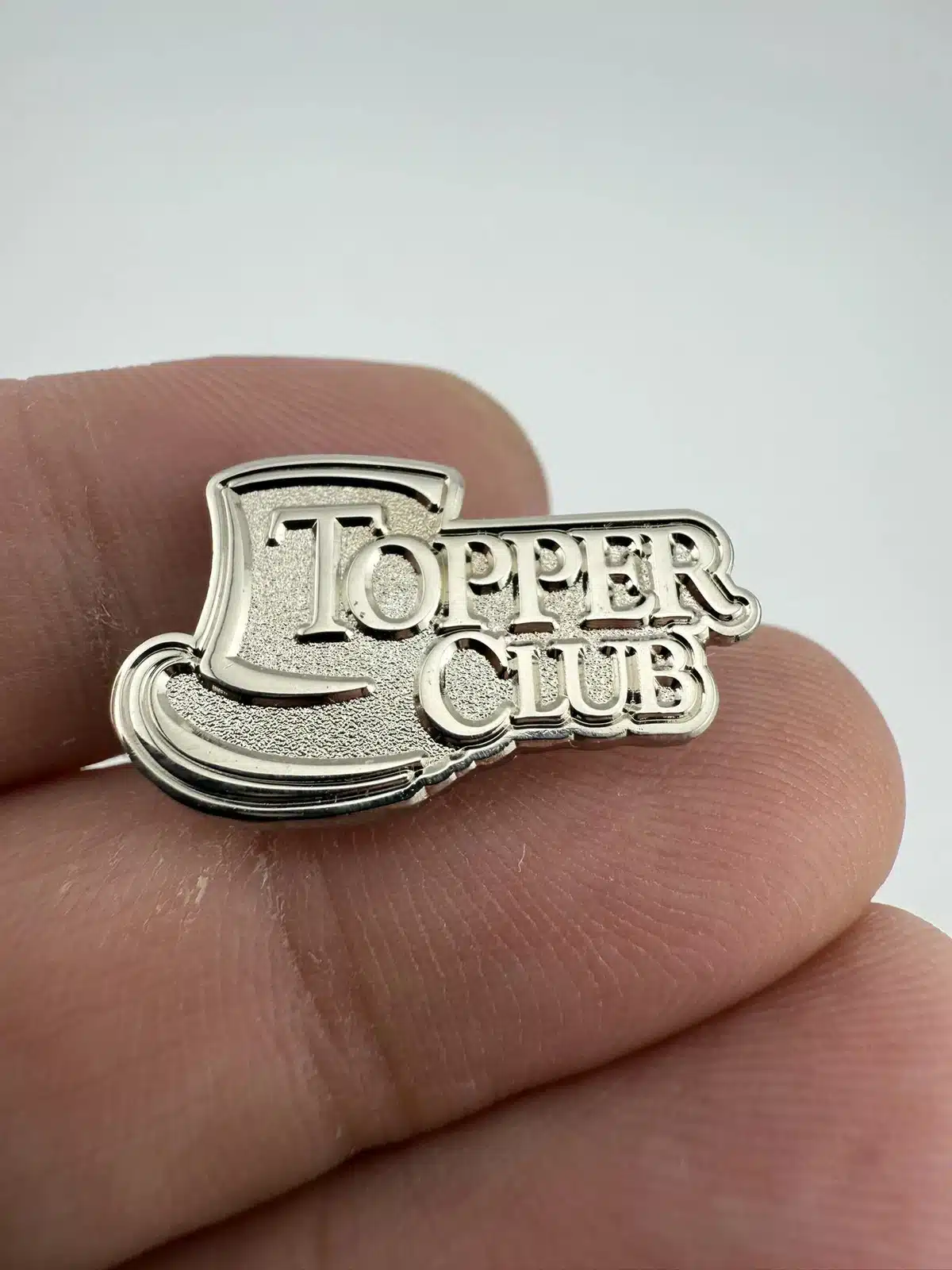 This silver tone lapel pin features the Topper Club emblem, representing the prestigious Farmers Insurance Award. The design showcases a classic motif of a top hat that highlights the achievements of top-performing agents within the Farmers Insurance organization.