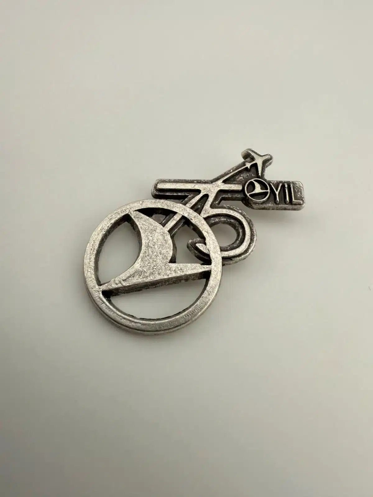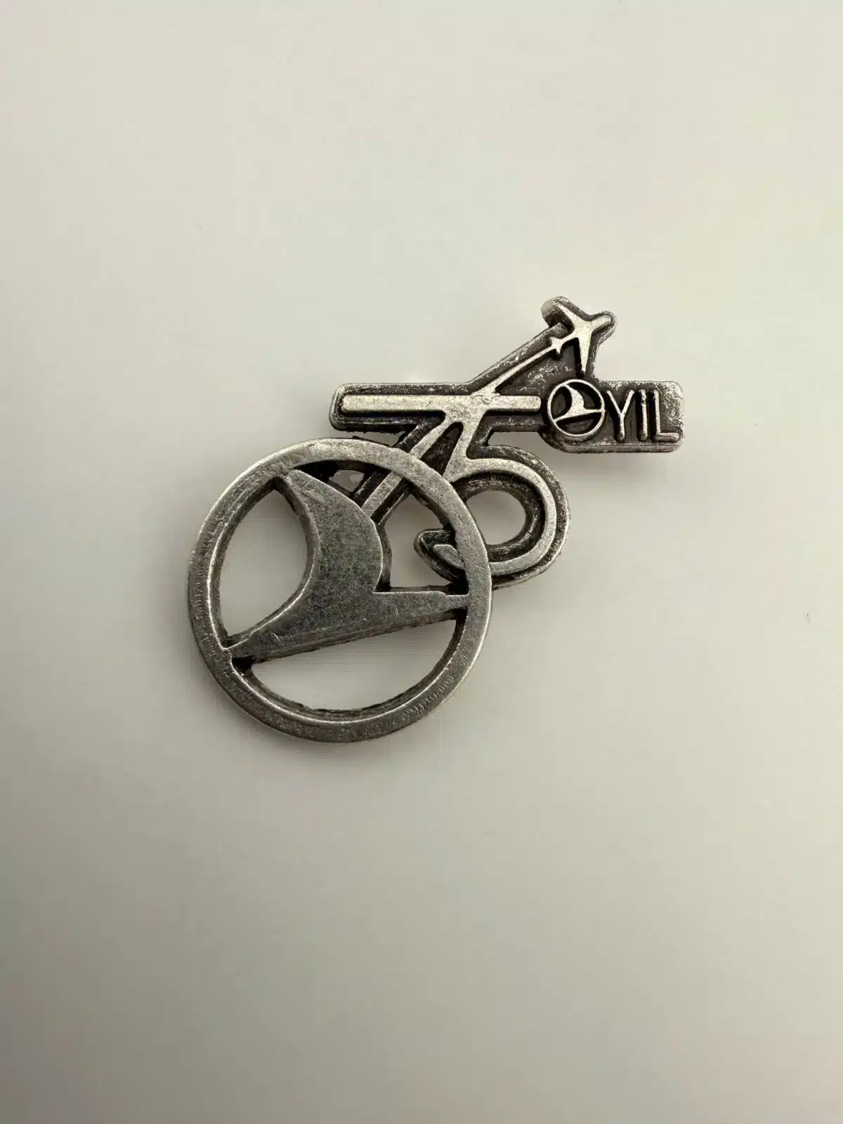 Commemorating Turkish Airlines’ 75th anniversary, this lapel pin features the airline’s iconic logo.