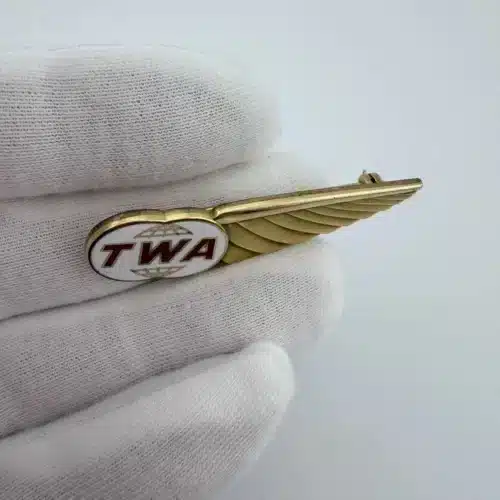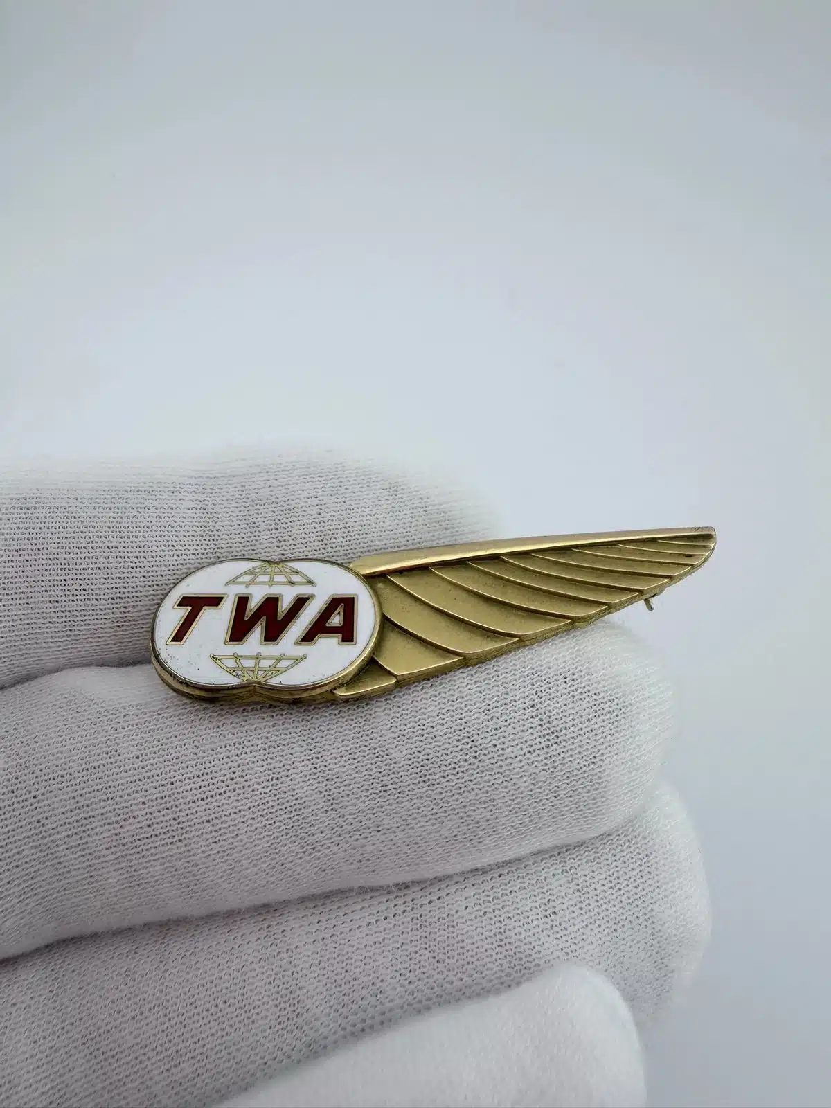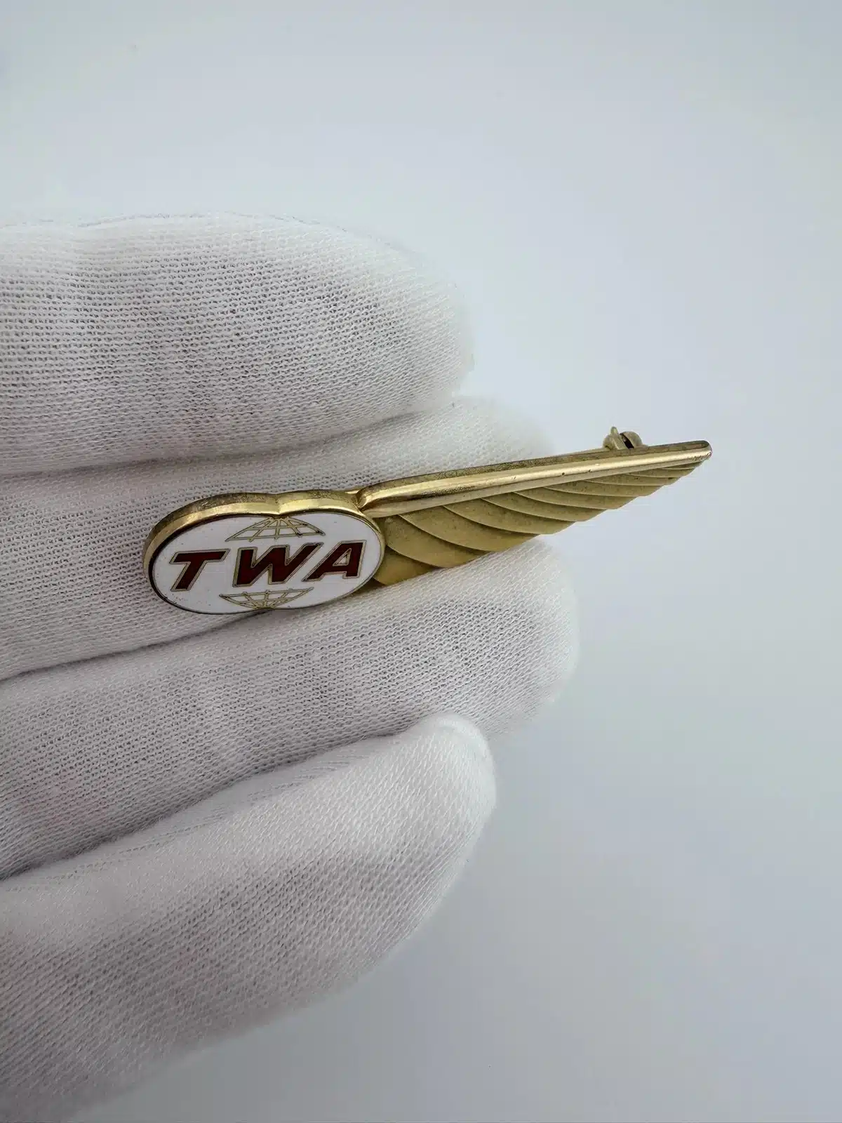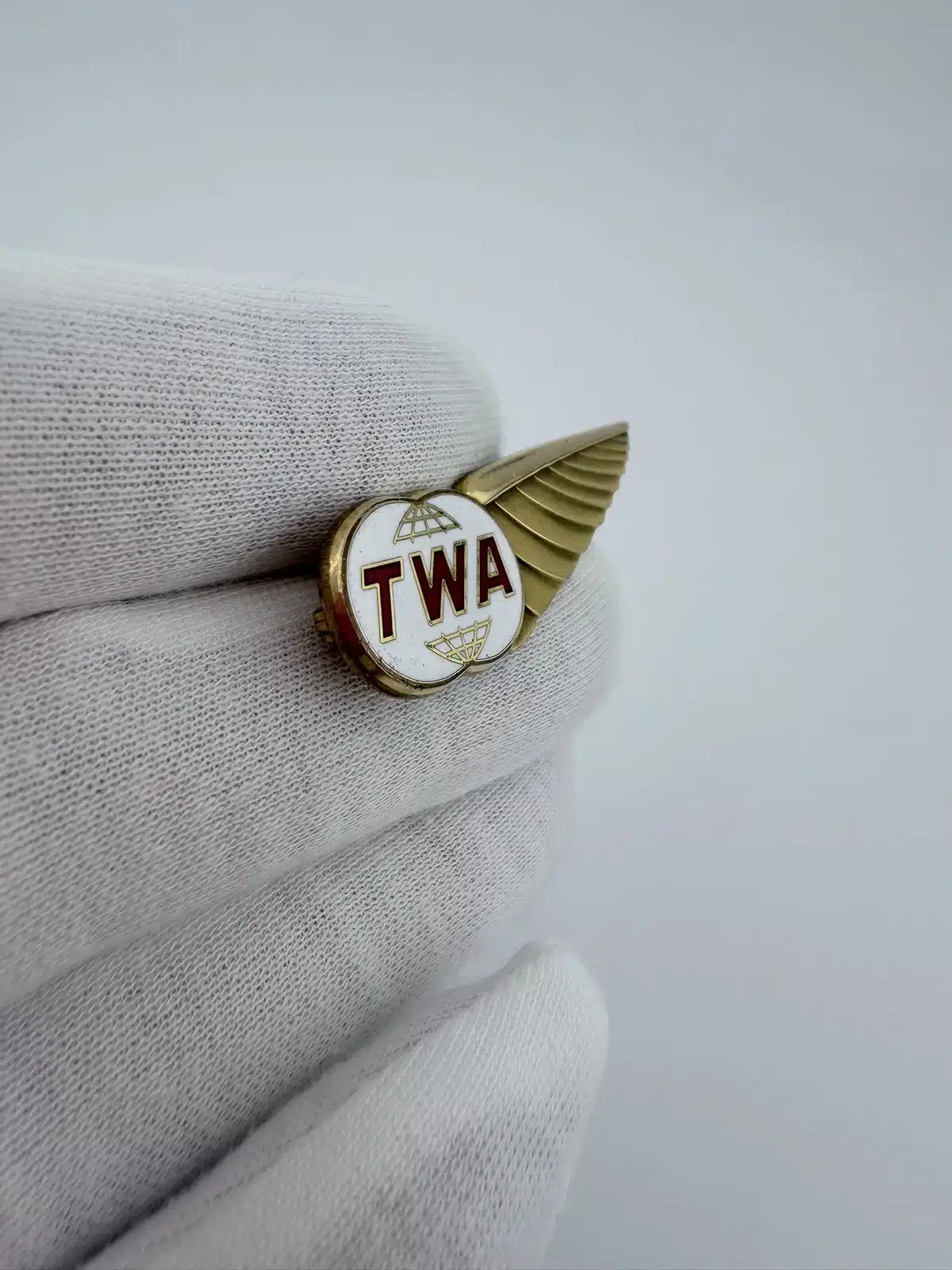 This particular style is believed to have been issued approximately between 1960 and 1968, during a period when TWA was expanding its international routes and modernizing its fleet. The badge was originally worn on a flight attendant’s hat as part of the official uniform.