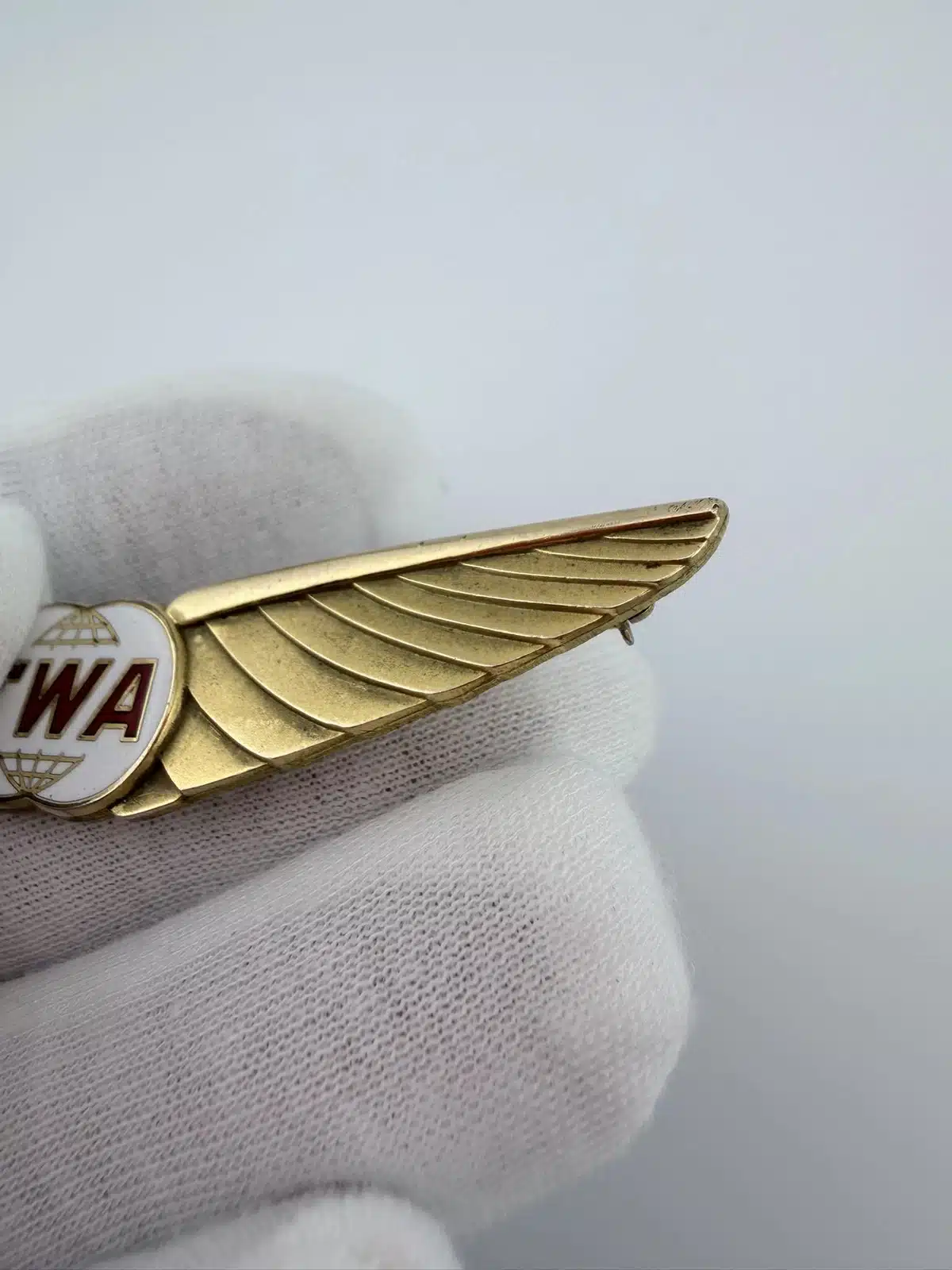 TWA Trans World Airlines Stewardess Wings Hat Badge – 1/10 10K GF