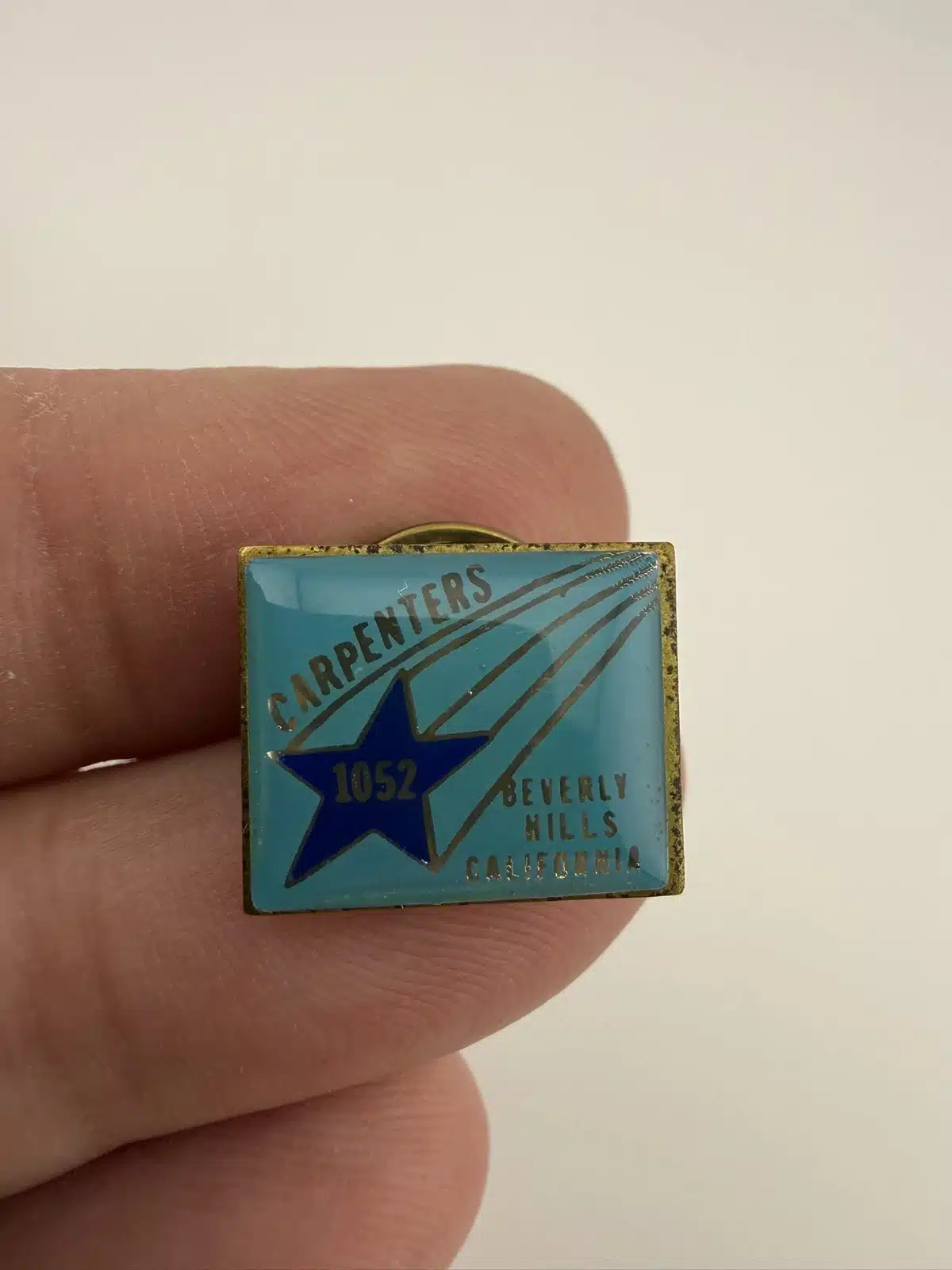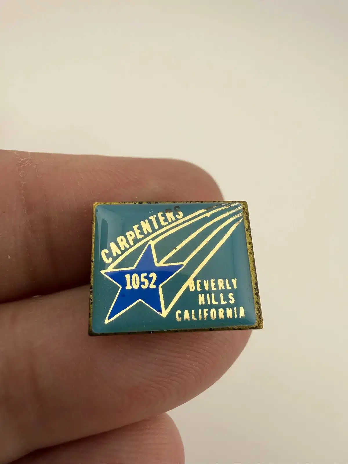 This pin originates from Local 1052 of the United Brotherhood of Carpenters and Joiners of America (UBC), a local based in Beverly Hills, California. The design features a shooting star, a clear nod to Hollywood and the surrounding film industry, reflecting the local’s connection to the entertainment capital of the world.