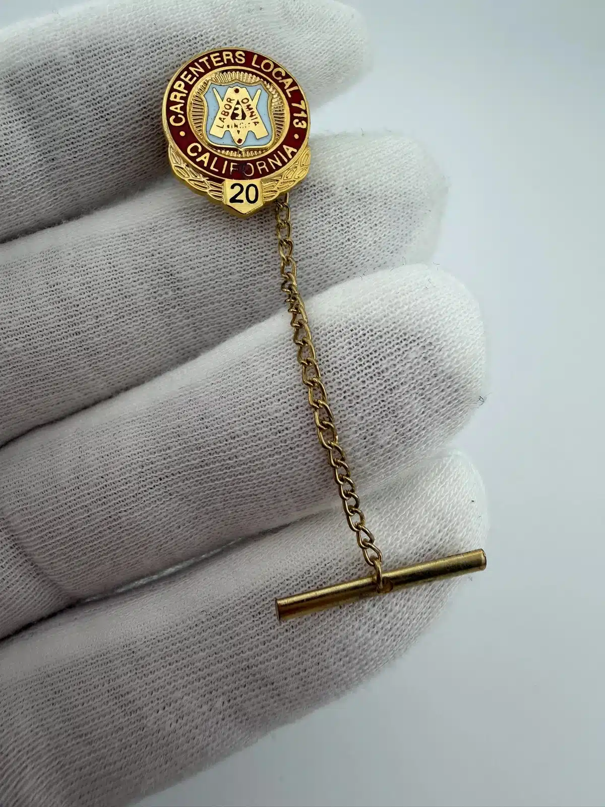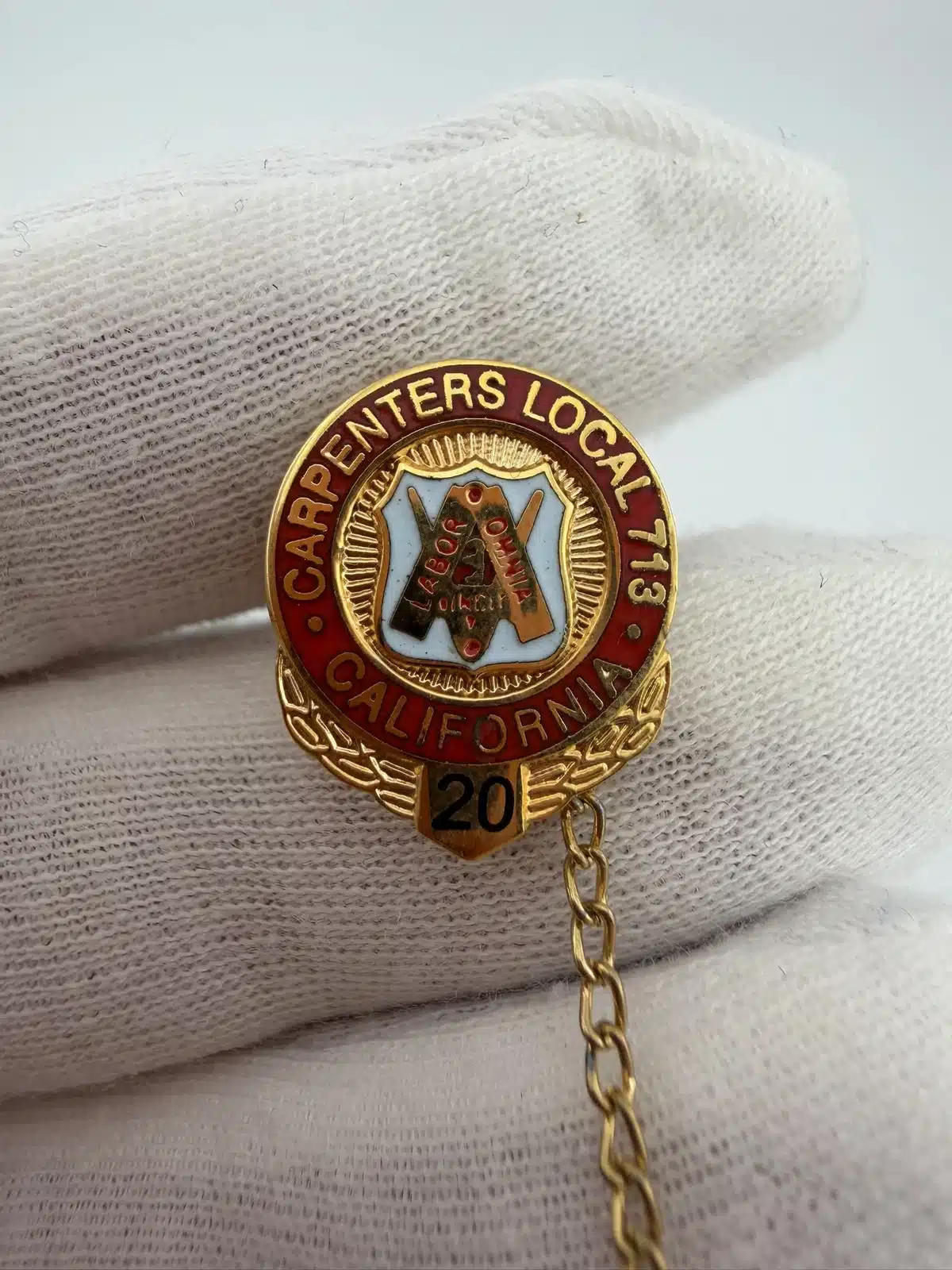 This pin features the emblem of the United Brotherhood of Carpenters, specifically representing Local 713 in California, and is designed to commemorate 20 years of membership. The intricate detailing showcases the union’s commitment to the craftsmanship and solidarity of carpenters over two decades.
