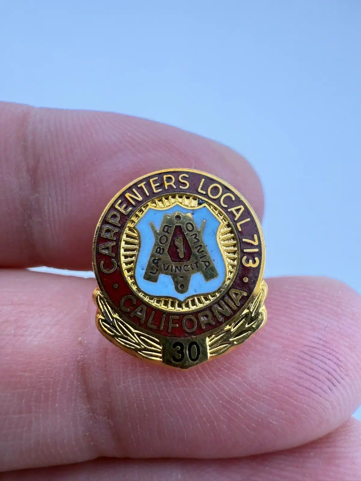 UBC United Brotherhood of Carpenters Local 713 California 30 Year Pin – 24K GP