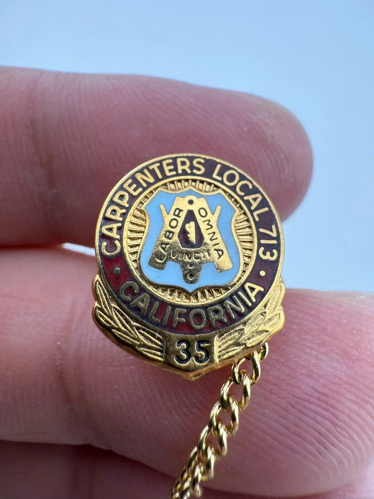 UBC United Brotherhood of Carpenters Local 713 California 35 Year Pin – 24K GP
