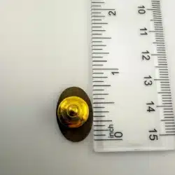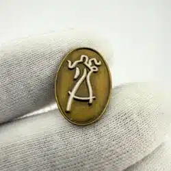 This oval-shaped tie tack pin features a striking design of a couple dancing, highlighted by a raised white outline against a gold tone background. The imagery captures the elegance and joy of dance, making it a timeless piece that celebrates this beloved art form.